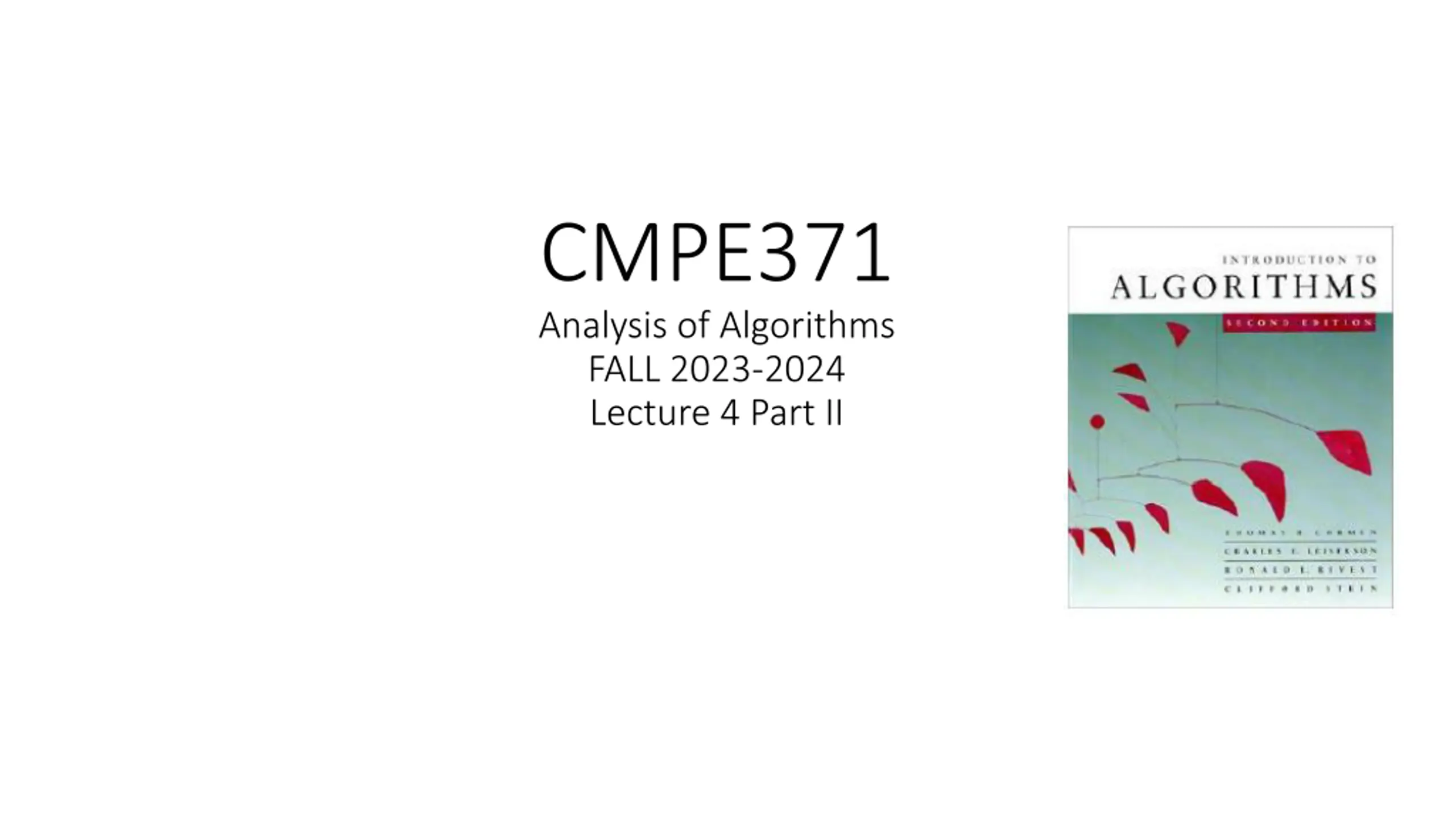 CMPE371 Analysis of Algorithms FALL 2023-2024 Lecture 4 Part II