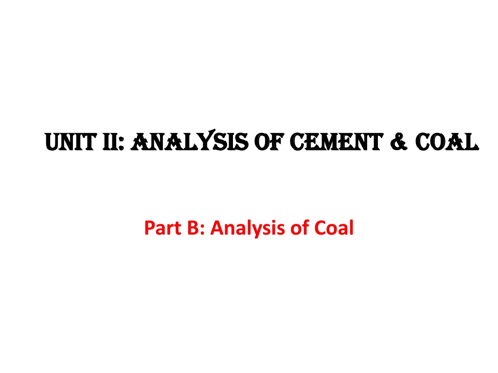 Unit II: Analysis of Cement & Coal Unit II: Analysis of Cement & Coal Part B: Analysis of Coal