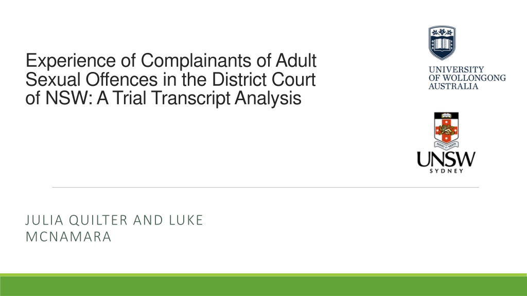Explore the comprehensive analysis of complainants' experiences in adult sexual offences trials conducted in the District Court of NSW, focusing on legislative and privacy protections, examination approaches, judicial interventions, rules of evidence, and more to enhance the understanding and support for complainants during the legal process.