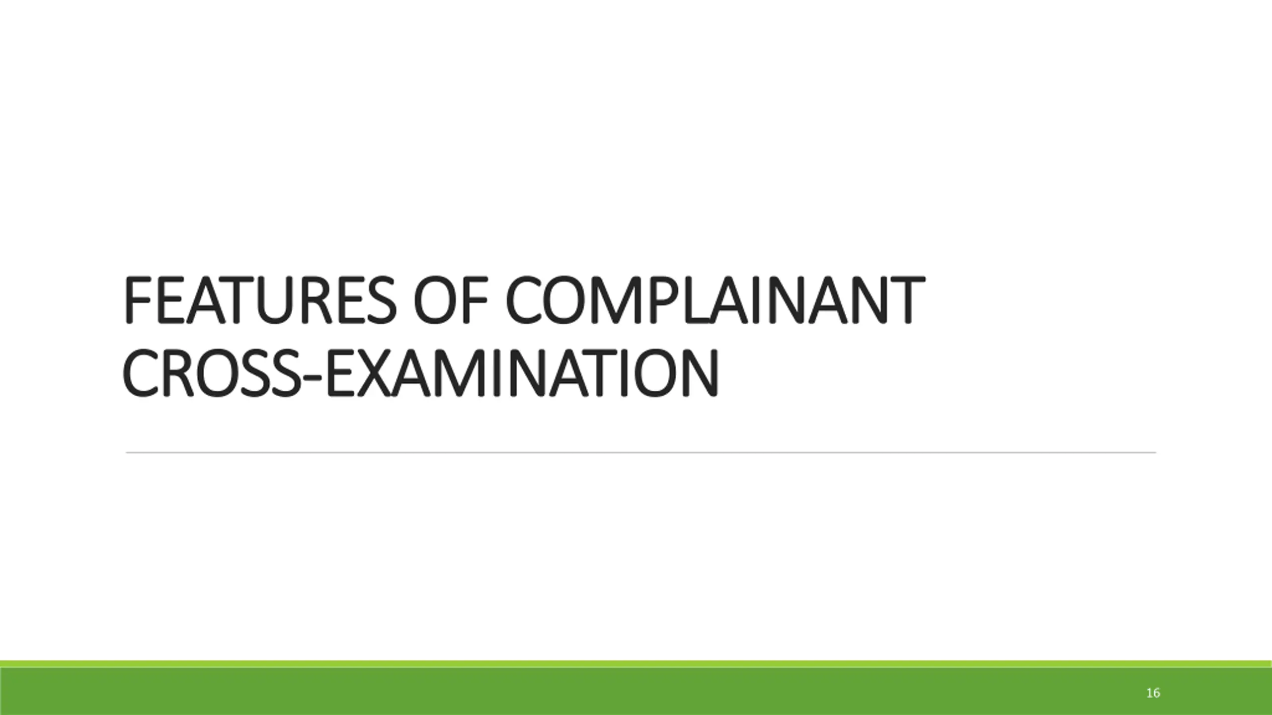FEATURES OF COMPLAINANT FEATURES OF COMPLAINANT CROSS CROSS- -EXAMINATION EXAMINATION 16