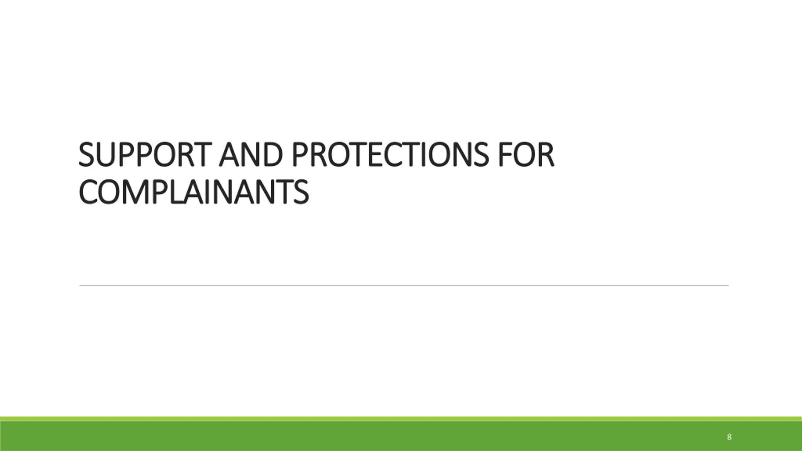 SUPPORT AND PROTECTIONS FOR SUPPORT AND PROTECTIONS FOR COMPLAINANTS COMPLAINANTS 8