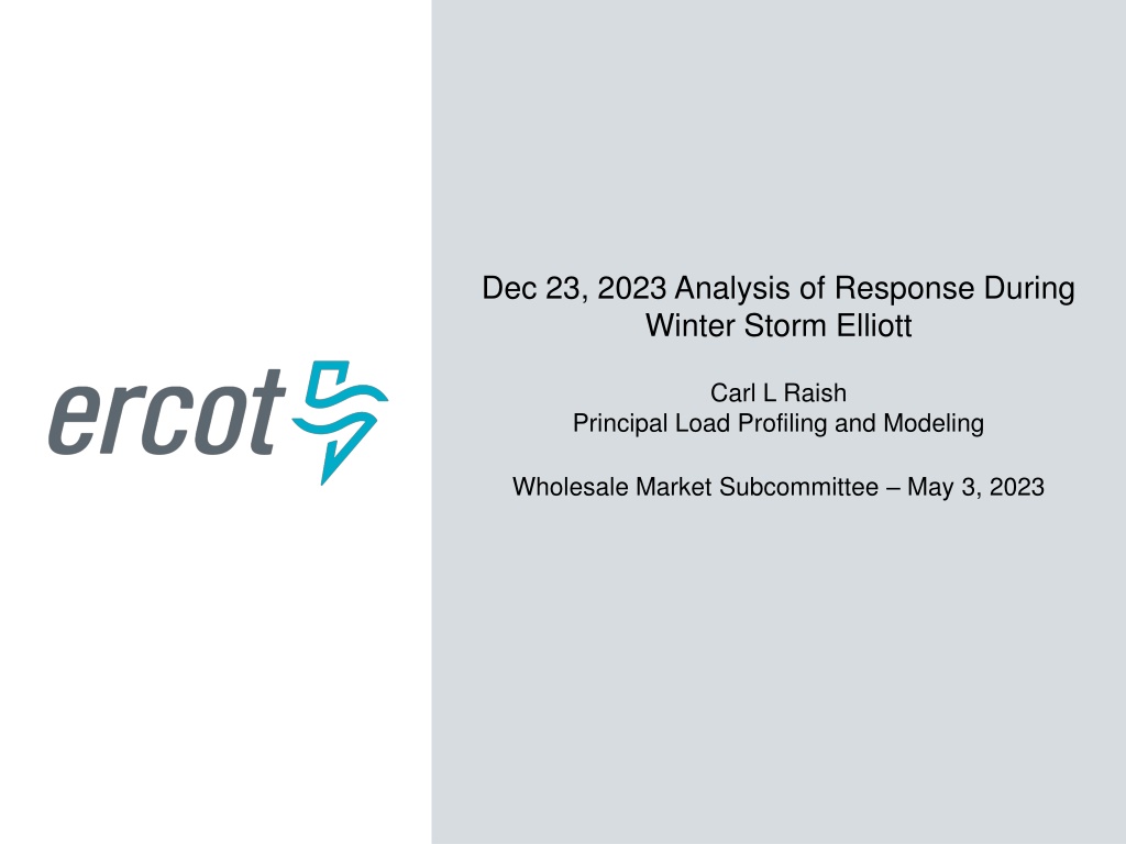 Dec 23, 2023 Analysis of Response During Winter Storm Elliott Carl L Raish Principal Load Profiling and Modeling Wholesale Market Subcommittee May 3, 2023