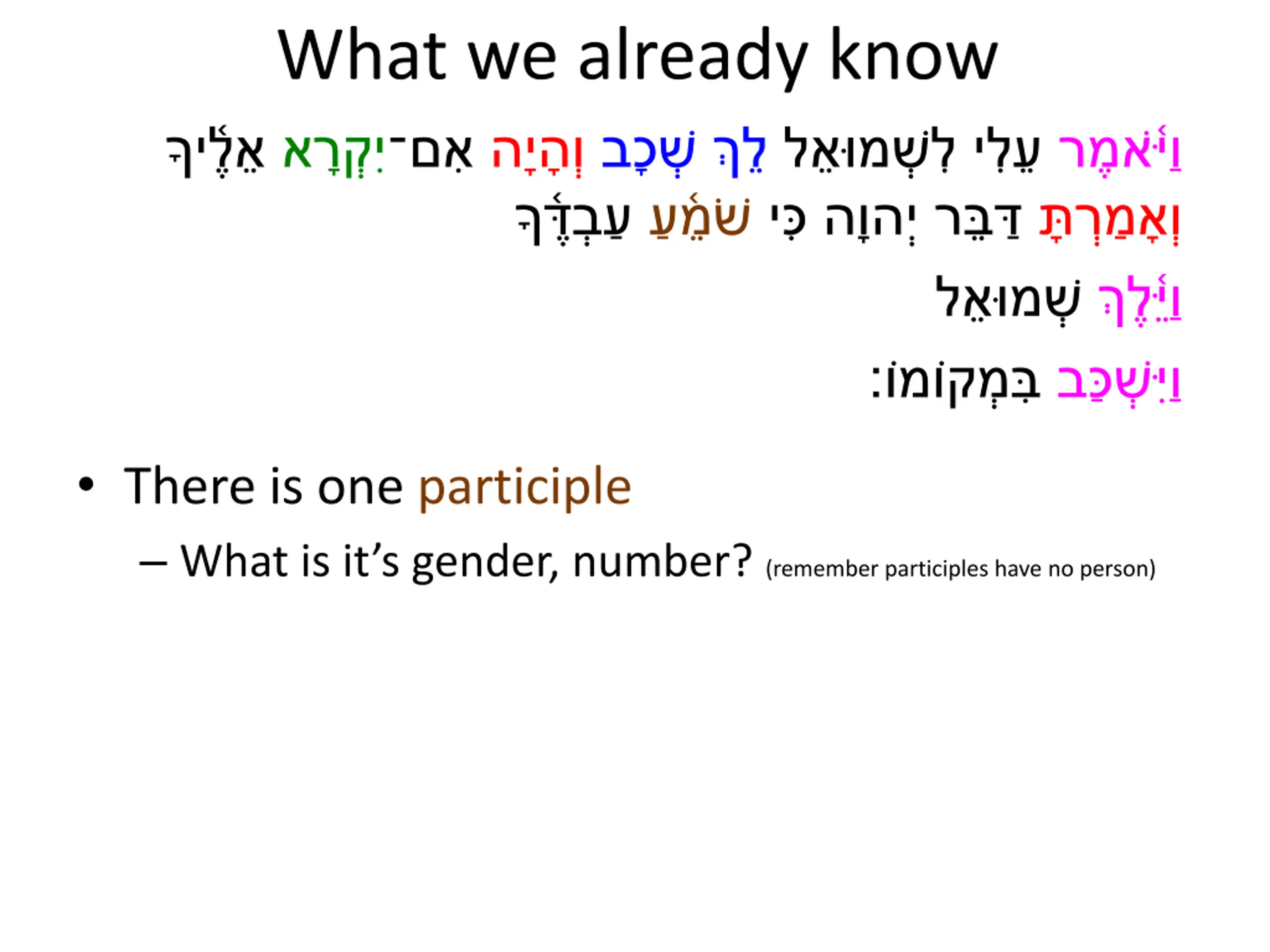 What we already know There is one participle What is it s gender, number? (remember participles have no person)