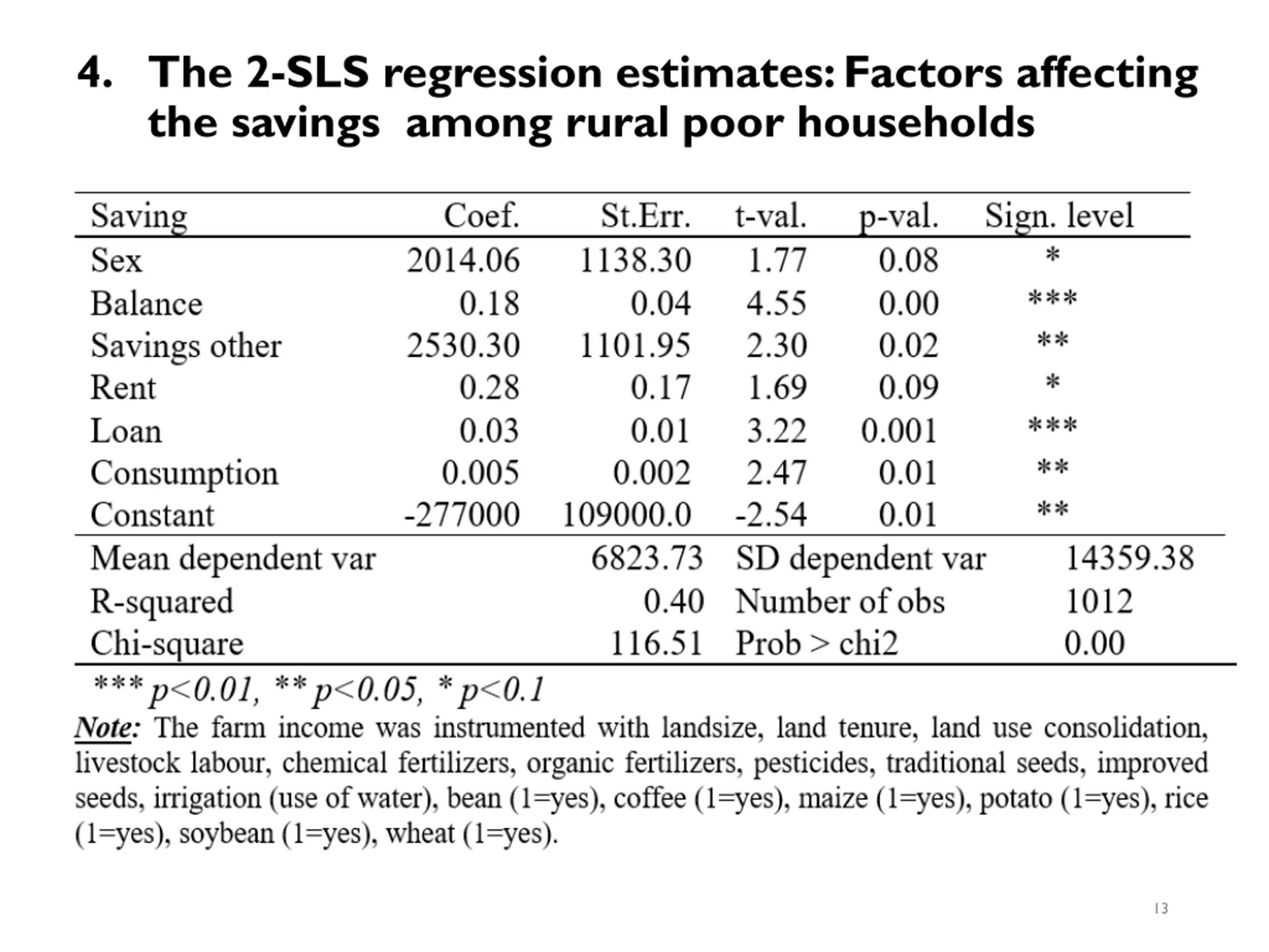 4. The 2-SLS regression estimates: Factors affecting the savings among rural poor households 13