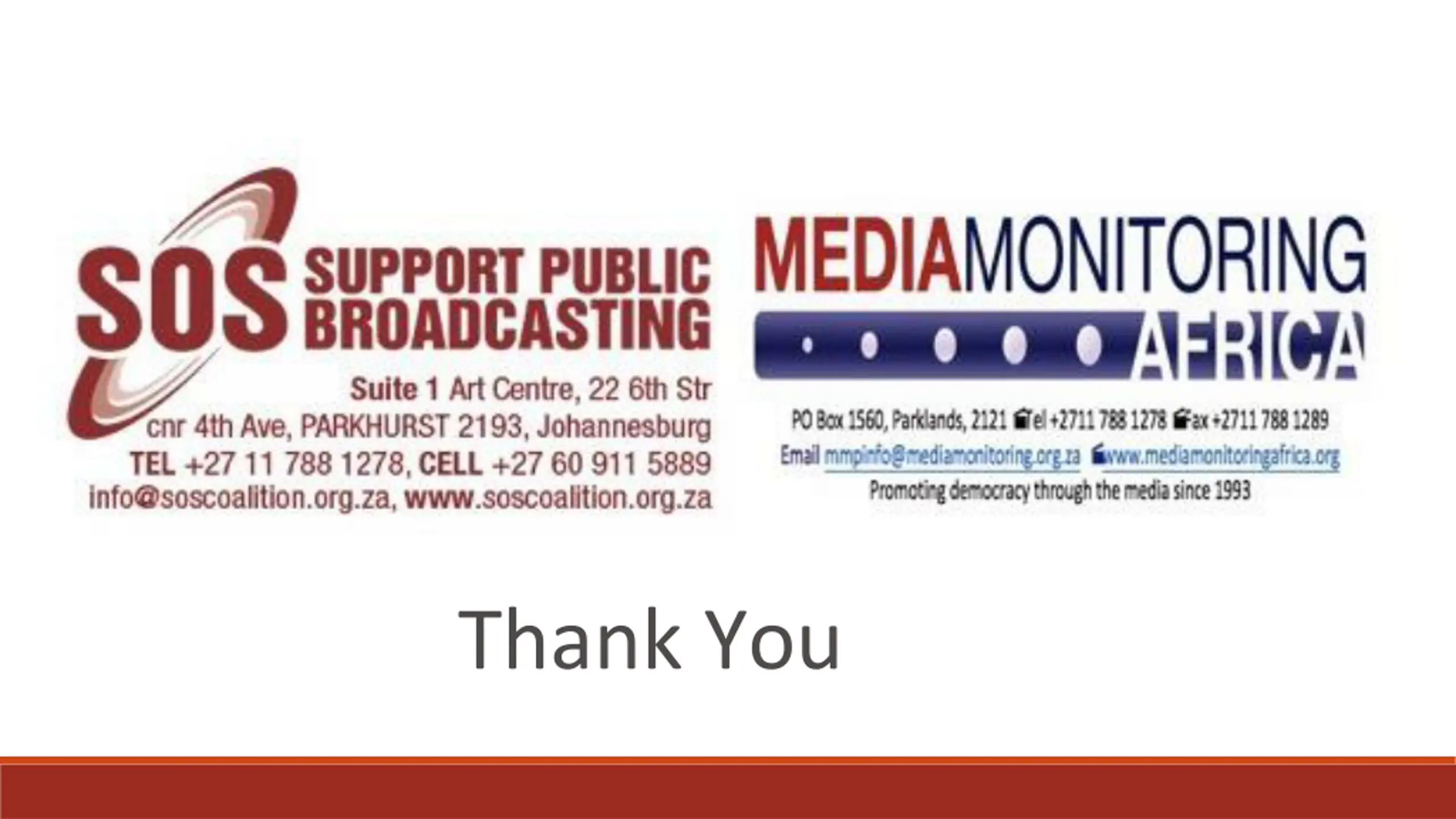 SOS COALITION AND MEDIA MONITORING AFRICA PRESENTATION ON DISCUSSION DOCUMENT ON THE INQUIRY INTO SUBSCRIPTION TELEVISION BROADCASTING SERVICES 8 MAY 2018