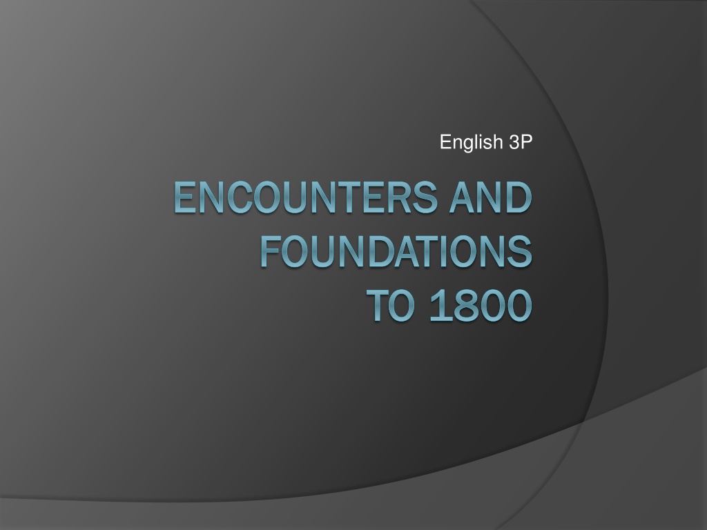 English 3P ENCOUNTERS AND ENCOUNTERS AND FOUNDATIONS FOUNDATIONS TO 1800 TO 1800