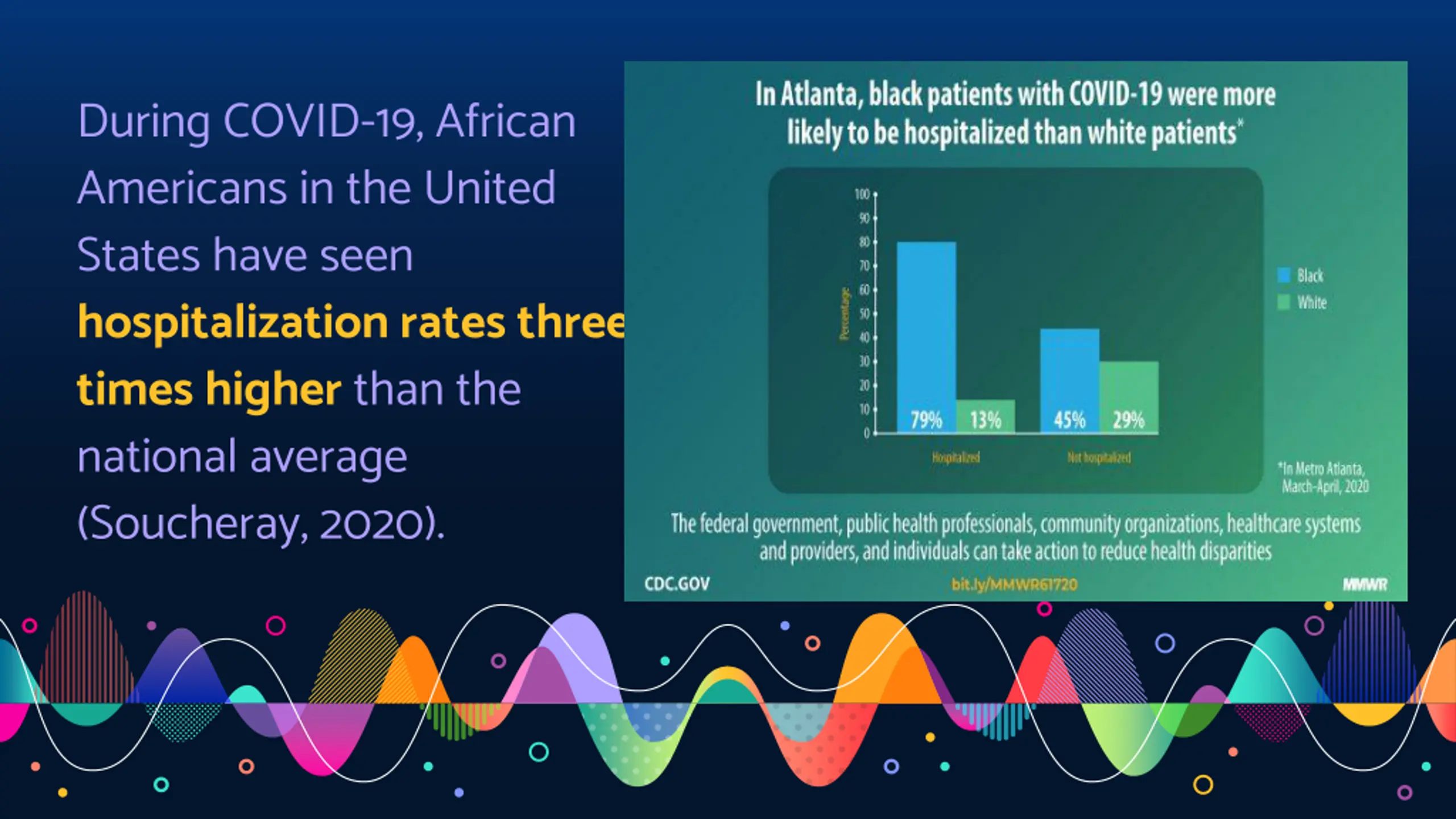 During COVID-19, African Americans in the United States have seen hospitalization rates three times higher than the national average (Soucheray, 2020).