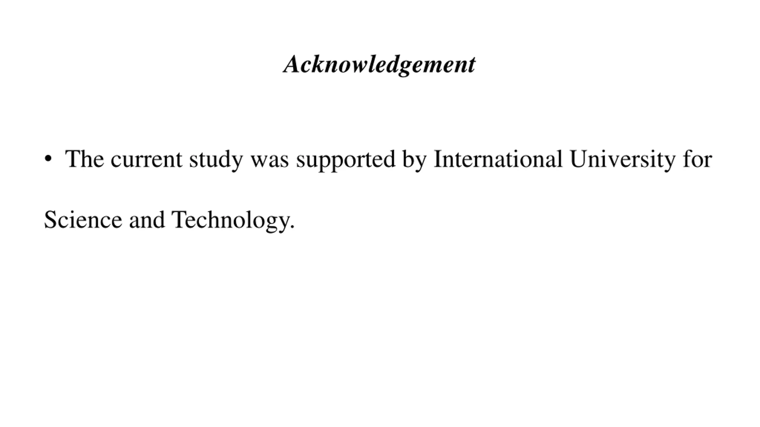 Acknowledgement The current study was supported by International University for Science and Technology.