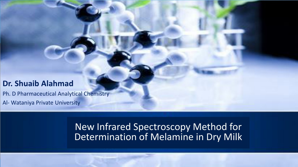 Dr. Shuaib Alahmad Ph. D Pharmaceutical Analytical Chemistry Al- Wataniya Private University New Infrared Spectroscopy Method for Determination of Melamine in Dry Milk