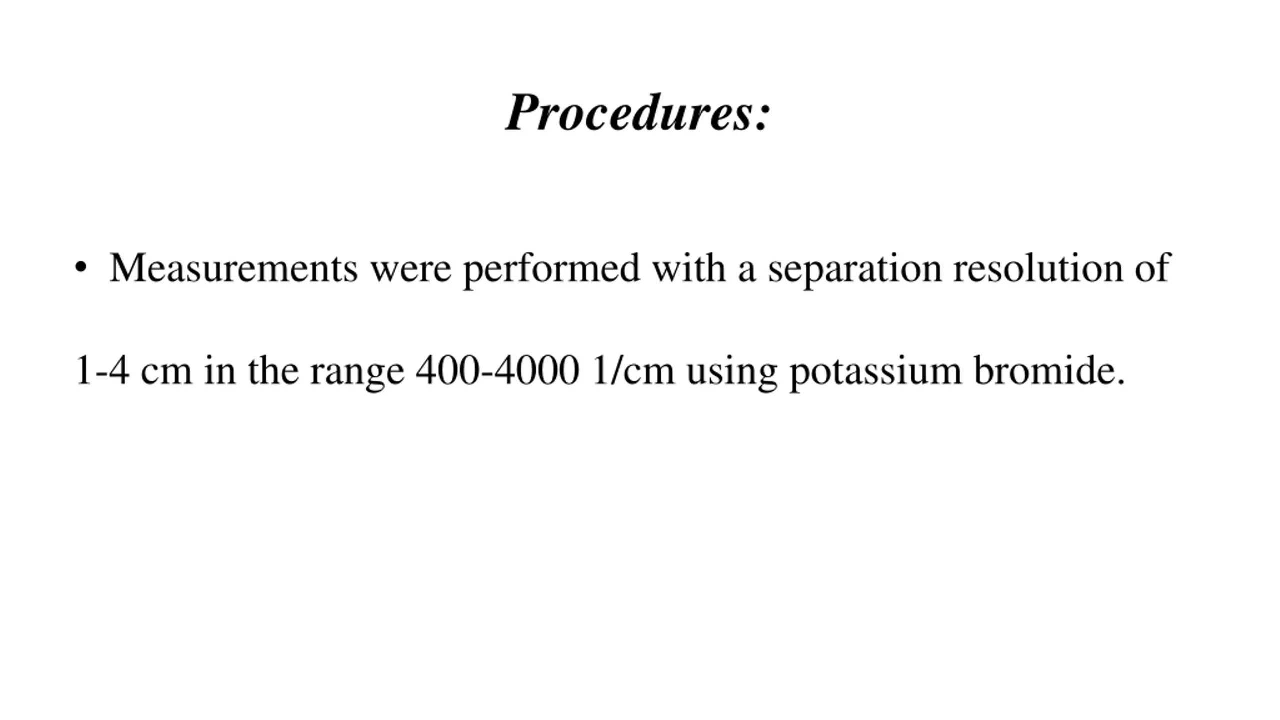 Procedures: Measurements were performed with a separation resolution of 1-4 cm in the range 400-4000 1/cm using potassium bromide.