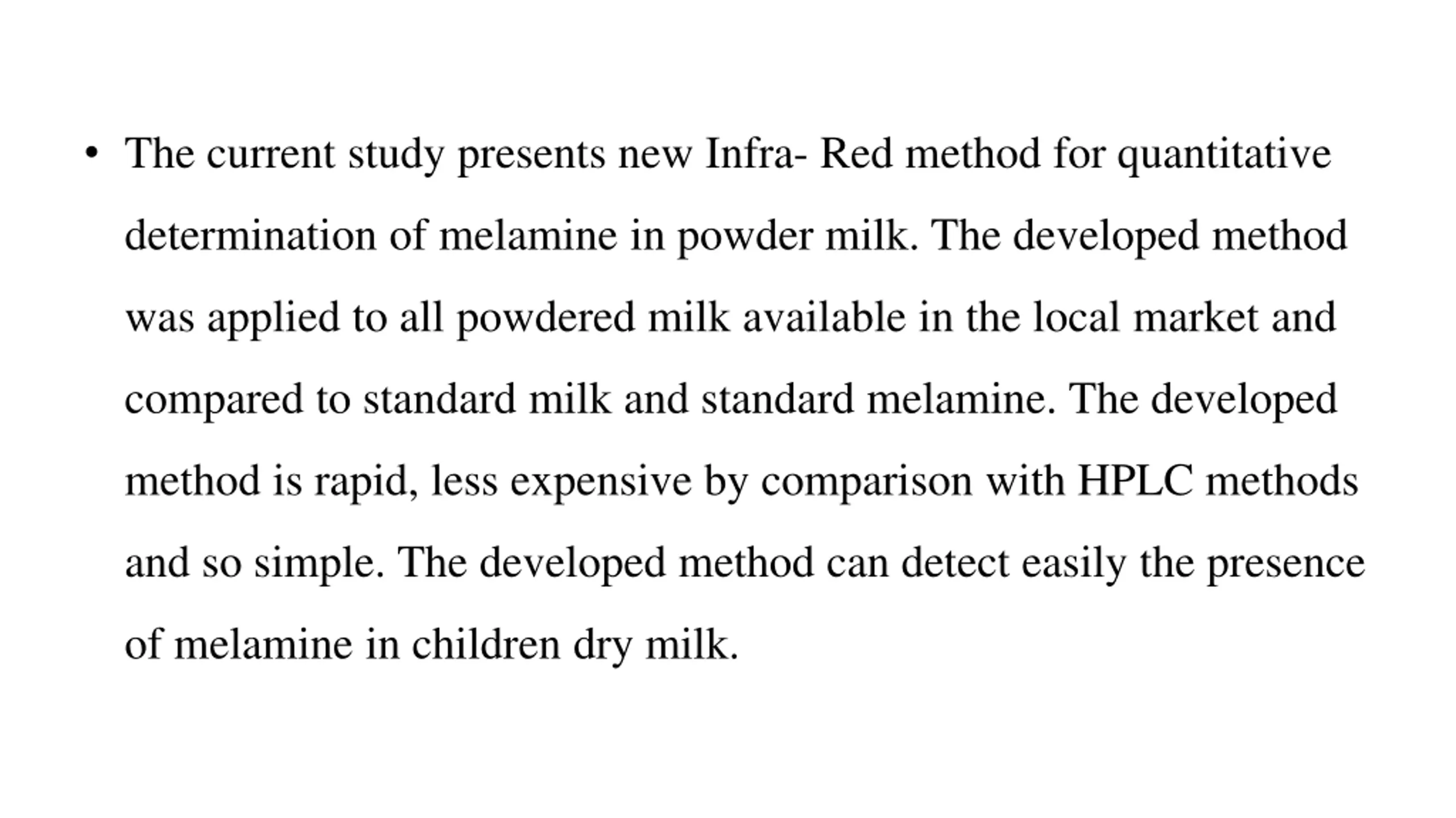 Aim of the work To develop infra-red method for the determination of melamine in infant milk.
