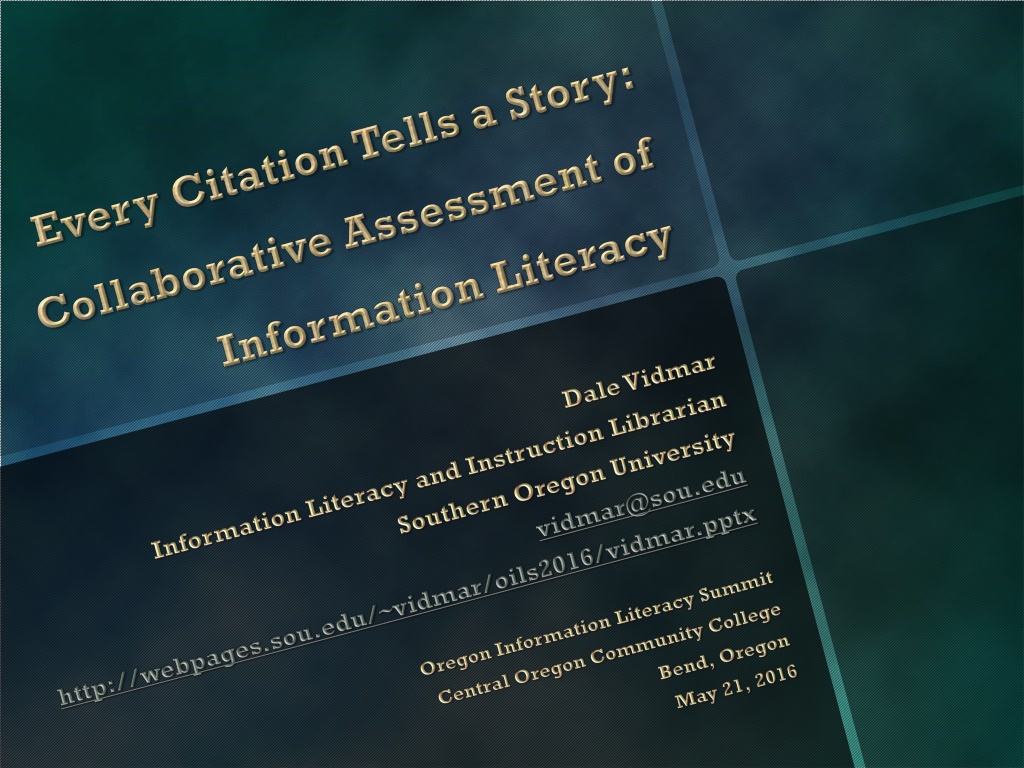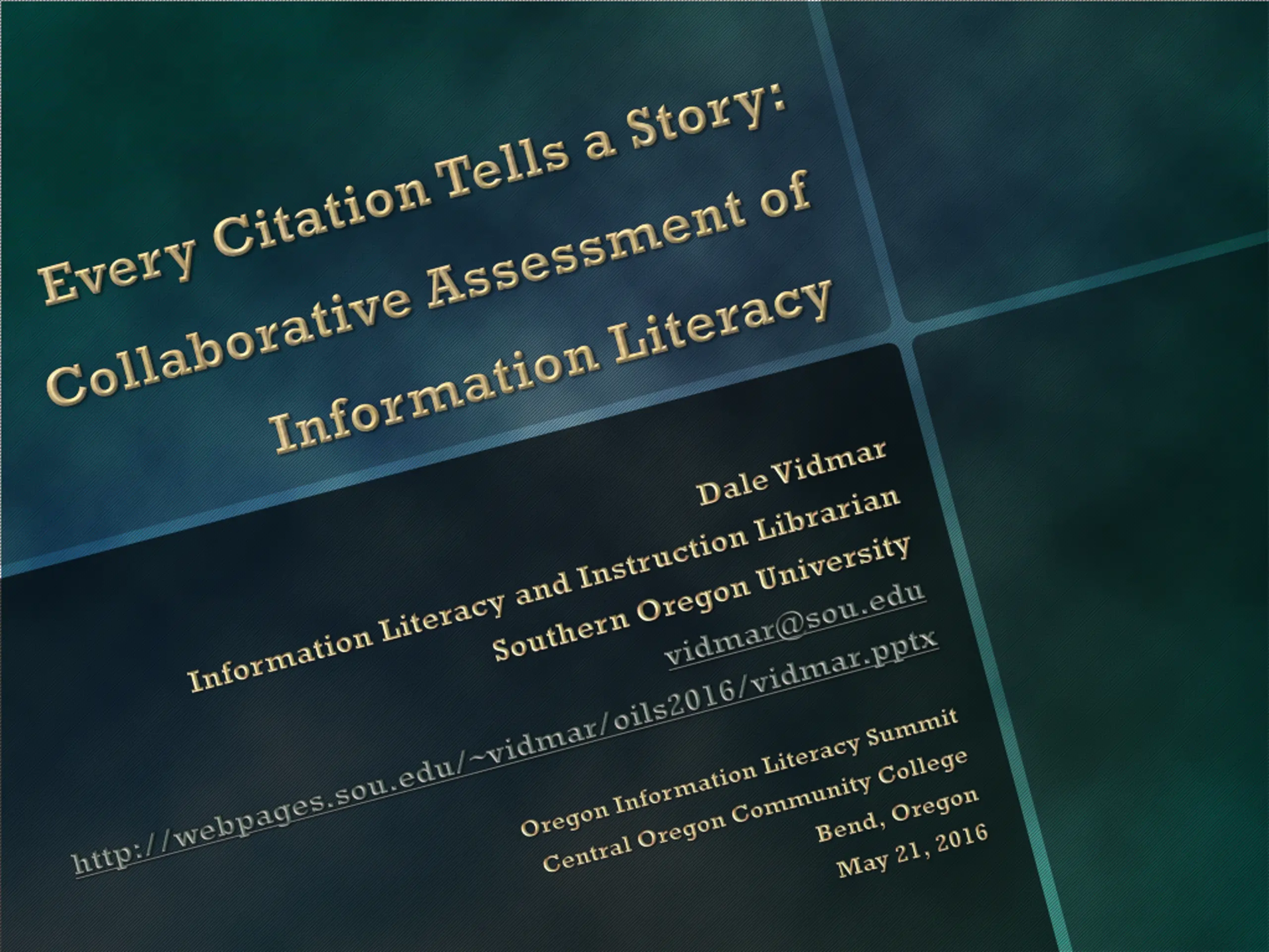 vidmar@sou.edu http://webpages.sou.edu/~vidmar/oils2016/vidmar.pptx