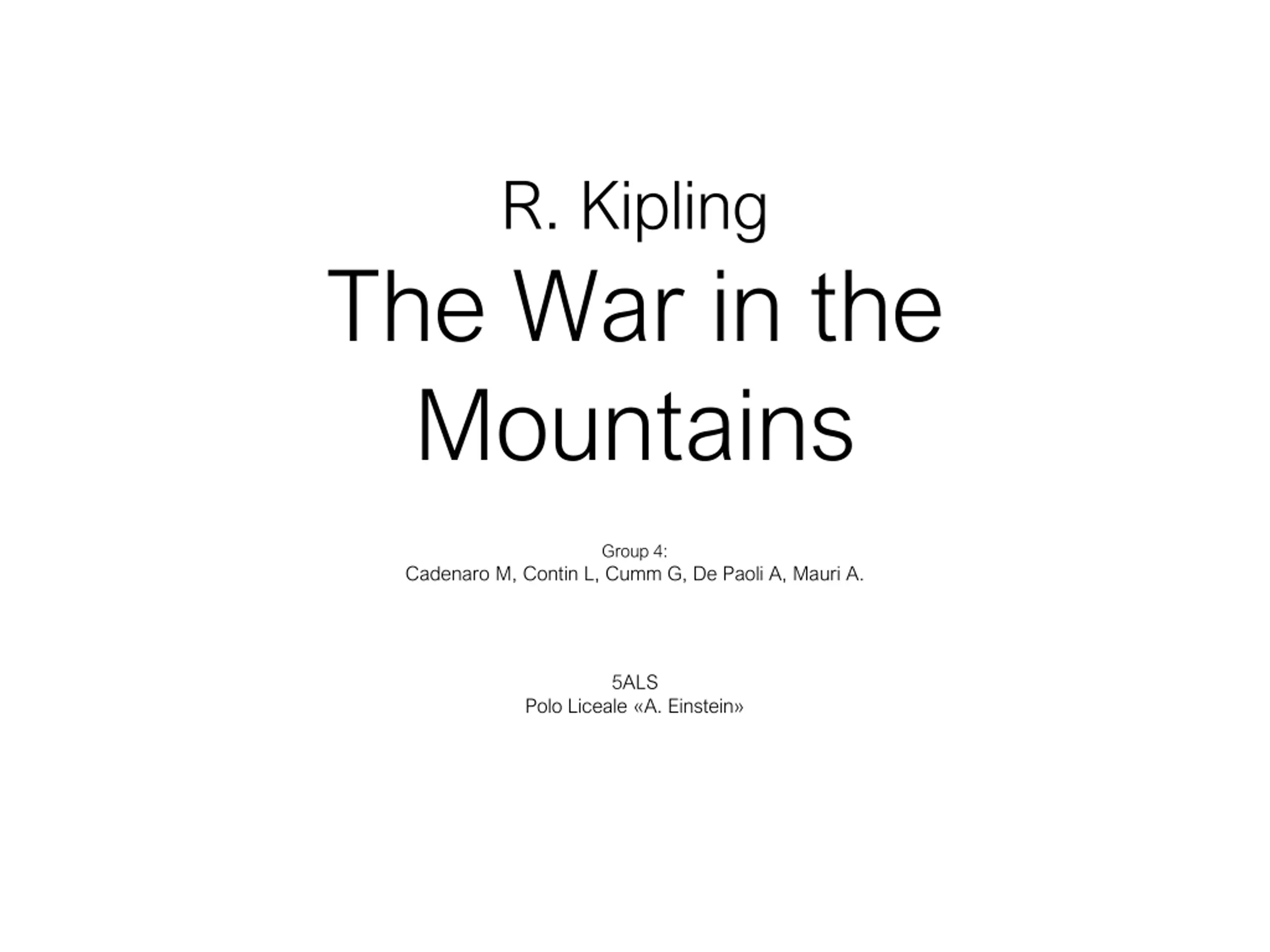 R. Kipling The War in the Mountains Group 4: Cadenaro M, Contin L, Cumm G, De Paoli A, Mauri A. 5ALS Polo Liceale A. Einstein