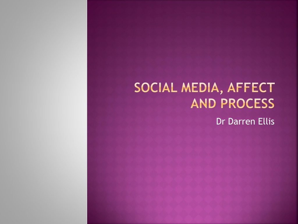 SOCIAL MEDIA, AFFECT AND PROCESS Dr Darren Ellis