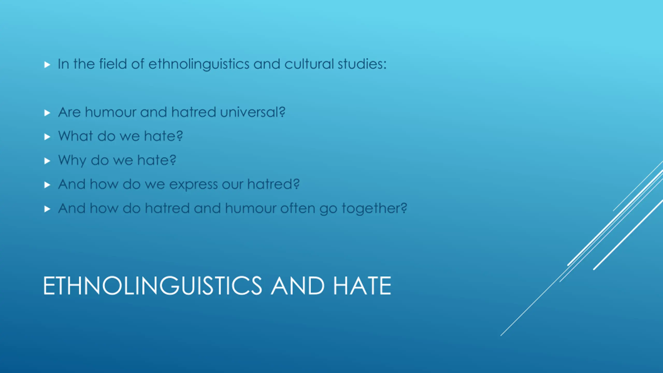 In the field of ethnolinguistics and cultural studies: Are humour and hatred universal? What do we hate? Why do we hate? And how do we express our hatred? And how do hatred and humour often go together? ETHNOLINGUISTICS AND HATE