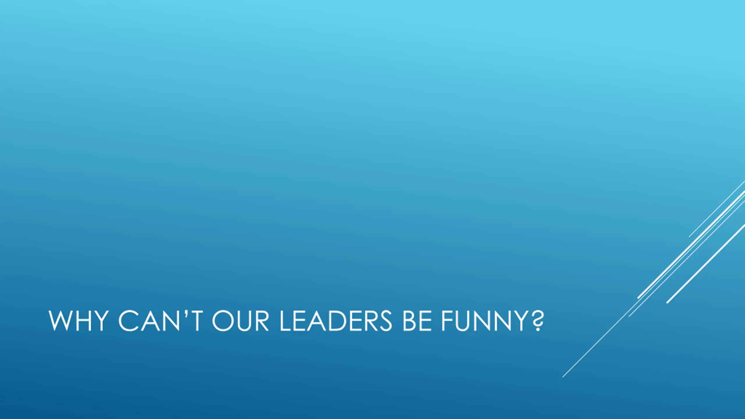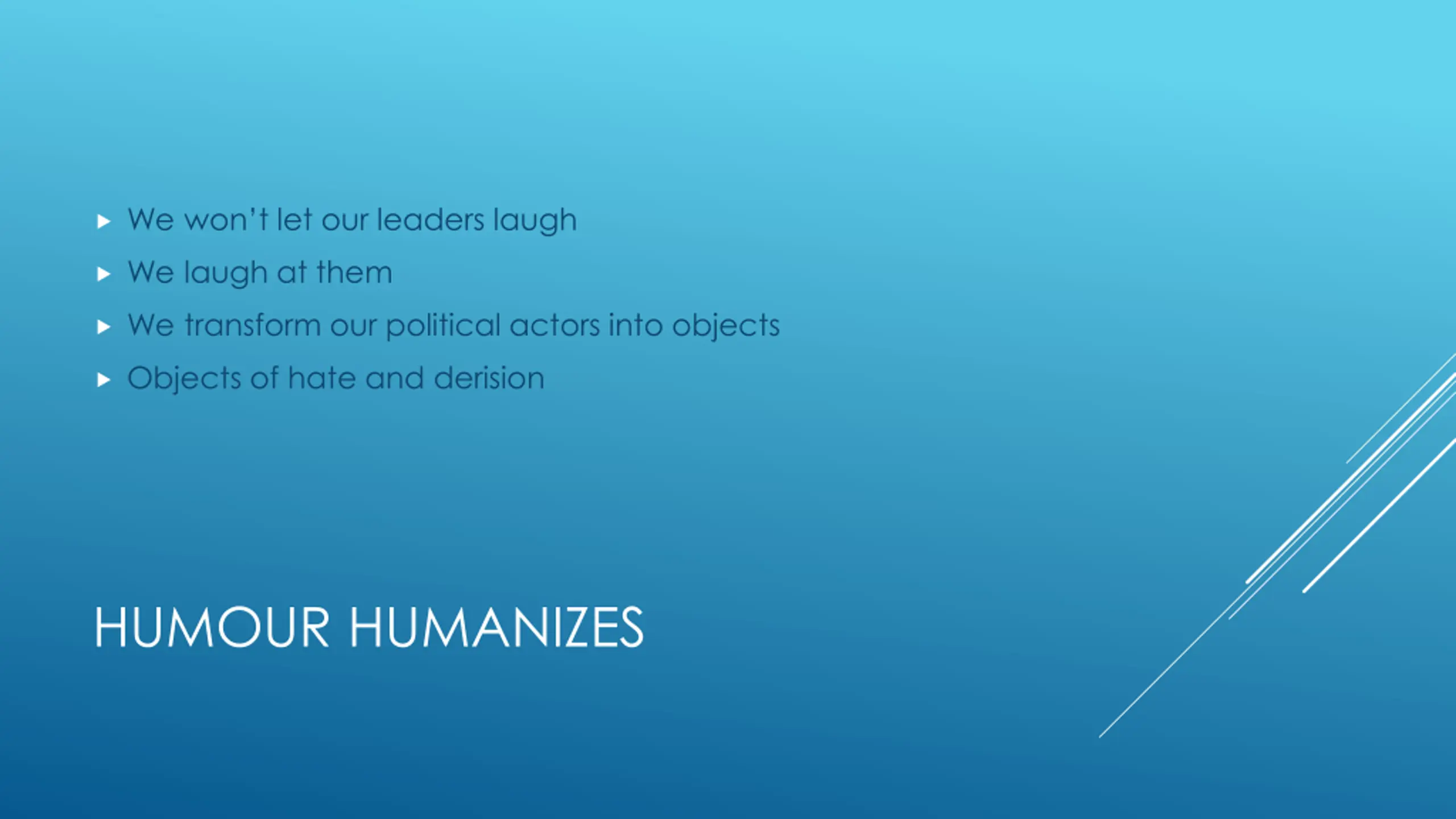 We wont let our leaders laugh We laugh at them We transform our political actors into objects Objects of hate and derision HUMOUR HUMANIZES