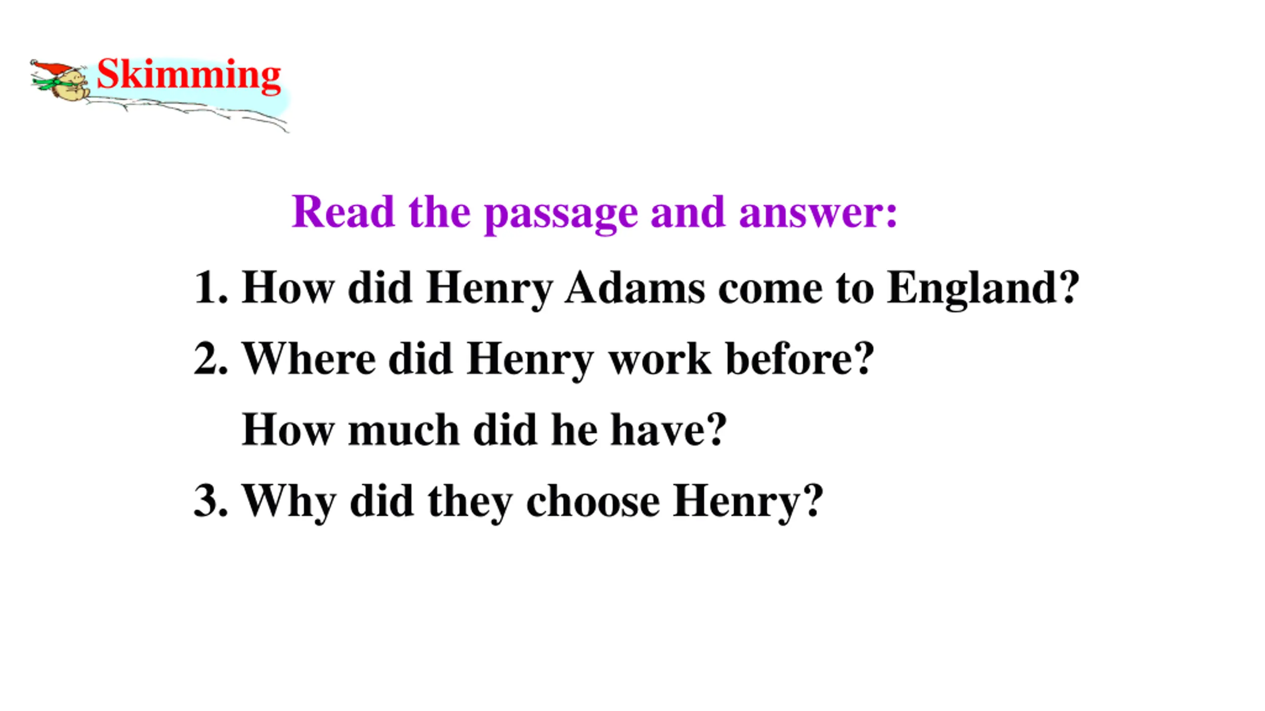 Skimming Read the passage and answer: 1. How did Henry Adams come to England? 2. Where did Henry work before? How much did he have? 3. Why did they choose Henry?