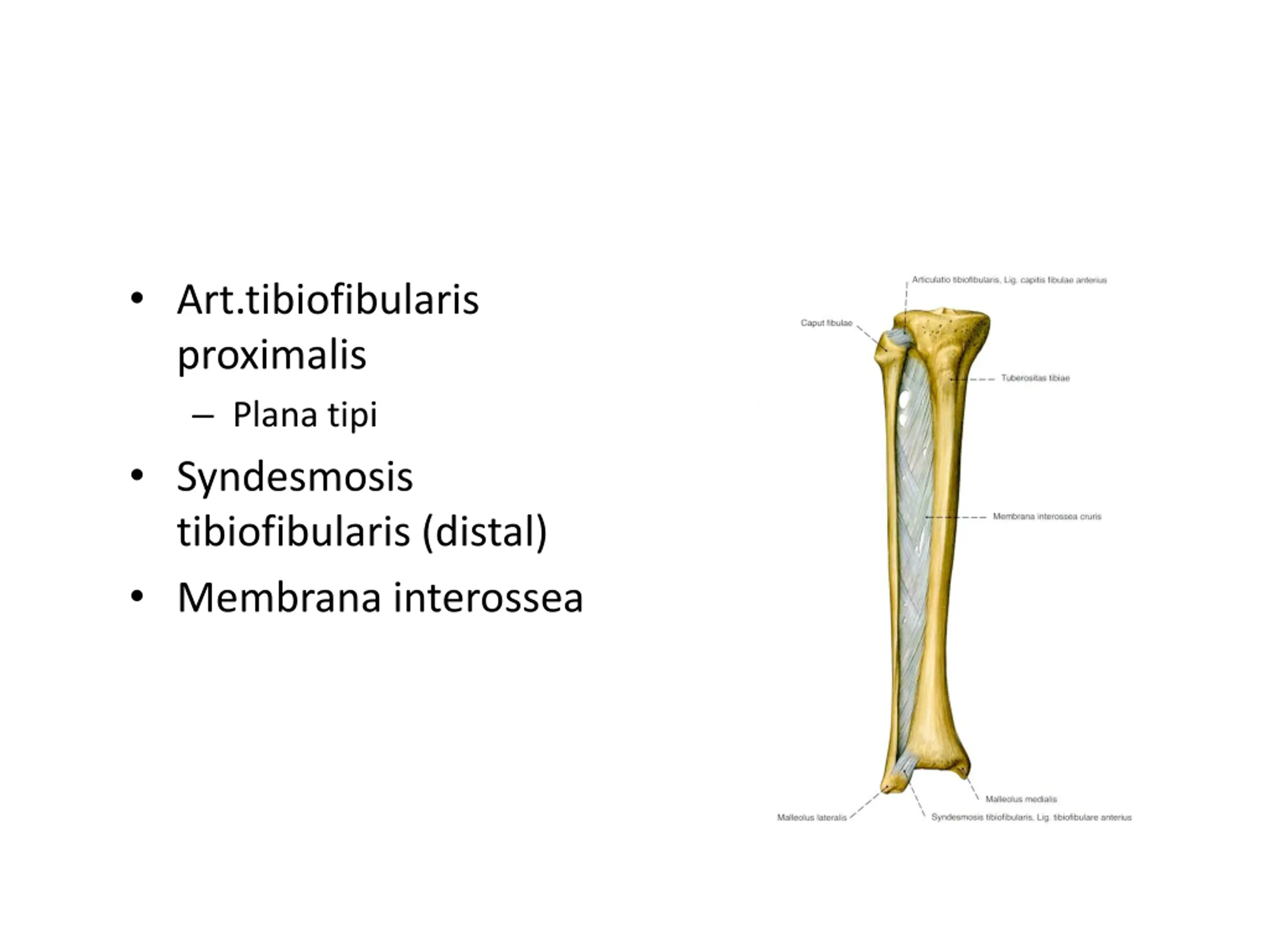 Art.tibiofibularis proximalis Plana tipi Syndesmosis tibiofibularis (distal) Membrana interossea