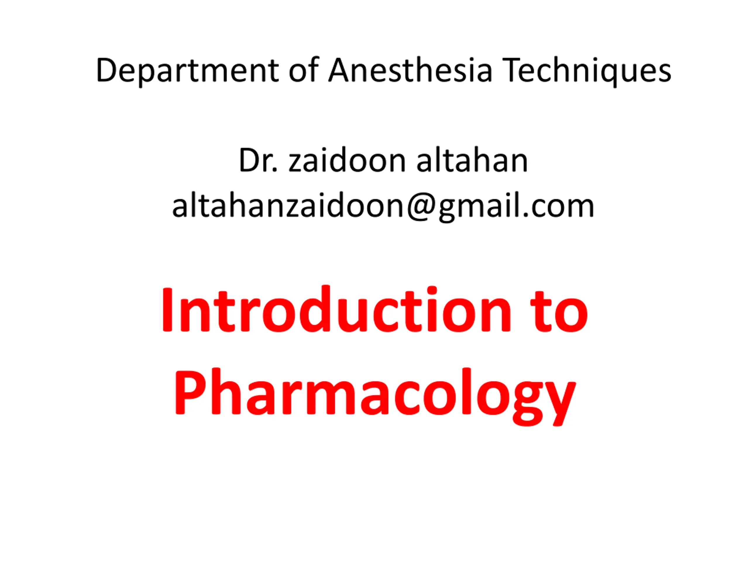 Department of Anesthesia Techniques Dr. zaidoon altahan altahanzaidoon@gmail.com Introduction to Pharmacology