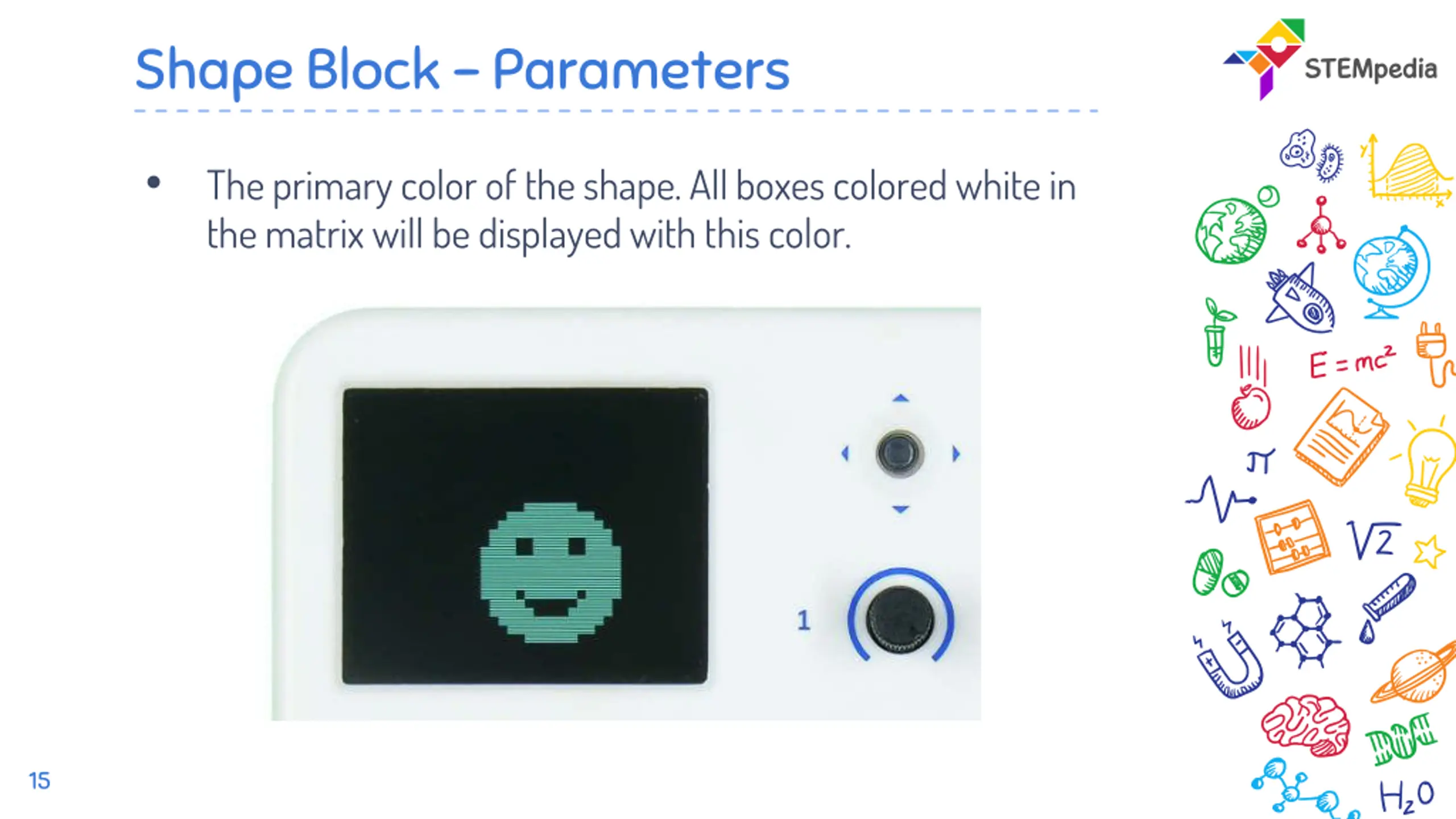 Shape Block - Parameters The primary color of the shape. All boxes colored white in the matrix will be displayed with this color. 15