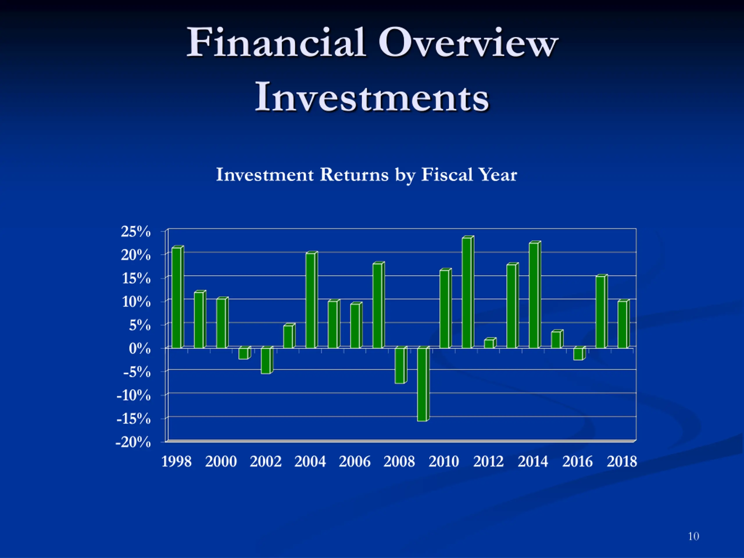 Financial Overview Investments Investment Returns by Fiscal Year 25% 20% 15% 10% 5% 0% -5% -10% -15% -20% 1998 2000 2002 2004 2006 2008 2010 2012 2014 2016 2018 10