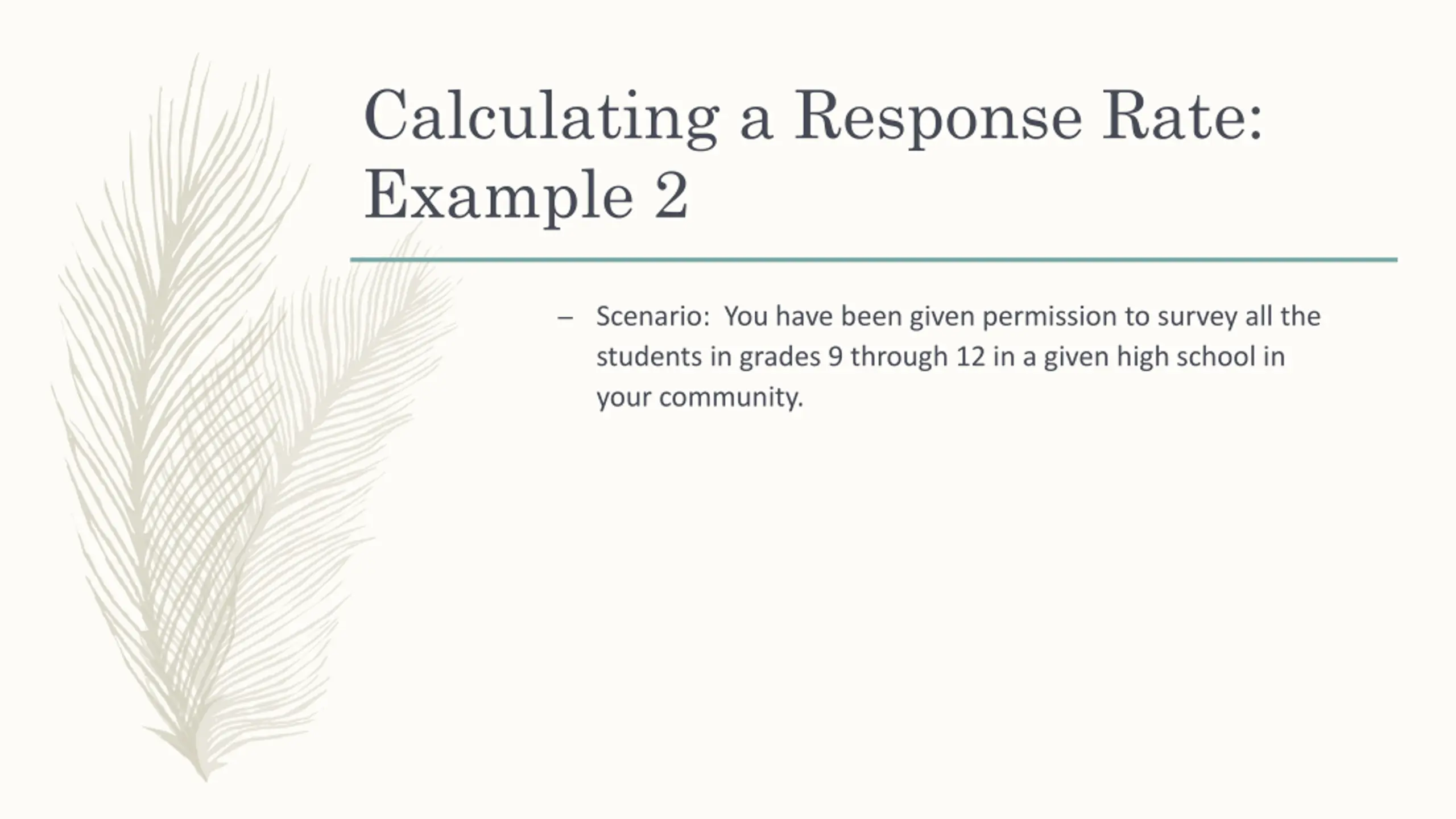 Calculating a Response Rate: Example 2 Scenario: You have been given permission to survey all the students in grades 9 through 12 in a given high school in your community.