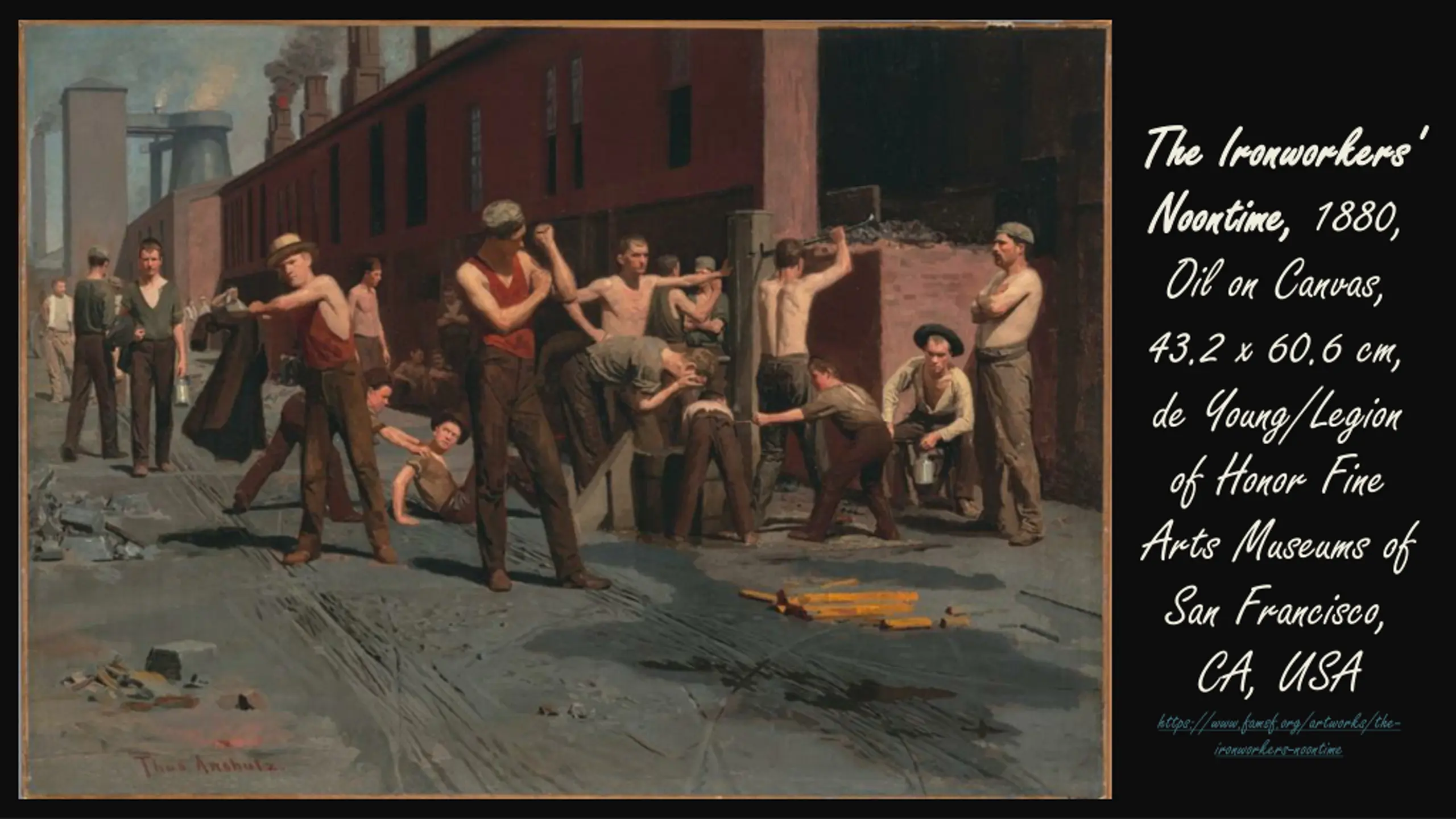 The Ironworkers' The Ironworkers' Noontime, Noontime, 1880, Oil on Canvas, 43.2 x 60.6 cm, de Young/Legion of Honor Fine Arts Museums of San Francisco, CA, USA https://www.famsf.org/artworks/the- ironworkers-noontime