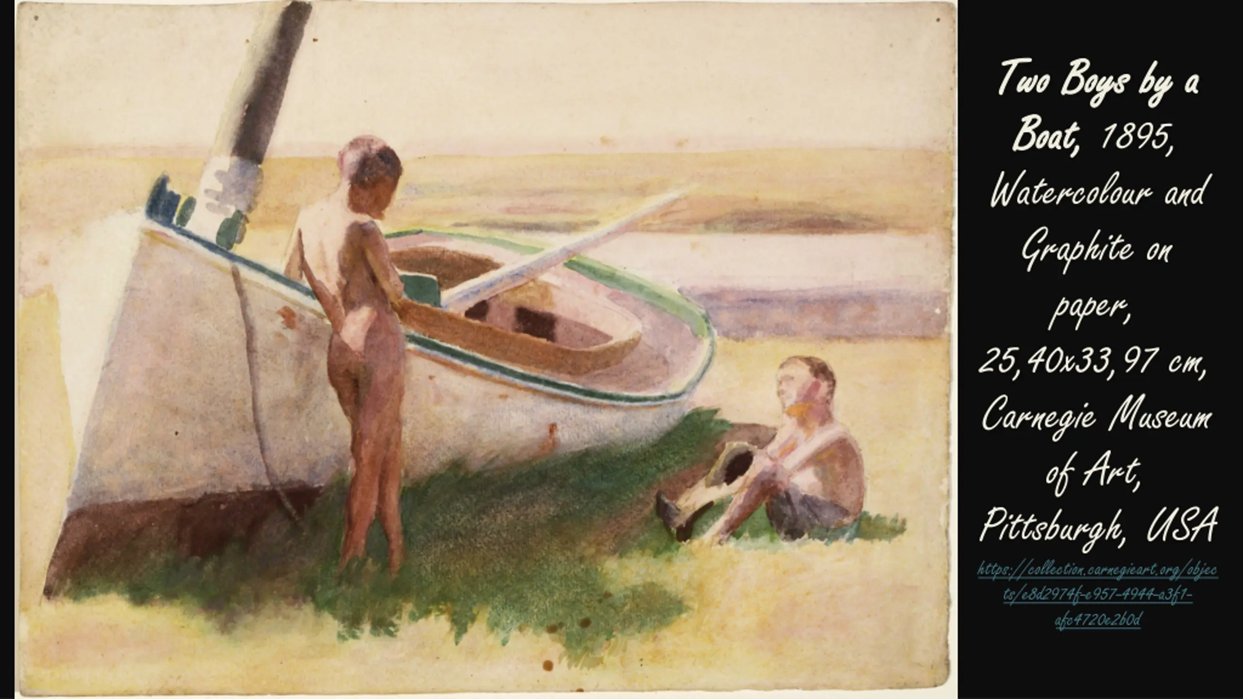 Two Boys by a Two Boys by a Boat, Boat, 1895, Watercolour and Graphite on paper, 25,40x33,97 cm, Carnegie Museum of Art, Pittsburgh, USA https://collection.carnegieart.org/objec ts/e8d2974f-e957-4944-a3f1- afc4720e2b0d
