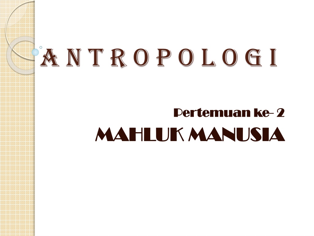 A n t r o p o l o g i Pertemuan Pertemuan ke ke- - 2 2 MAHLUK MANUSIA MAHLUK MANUSIA
