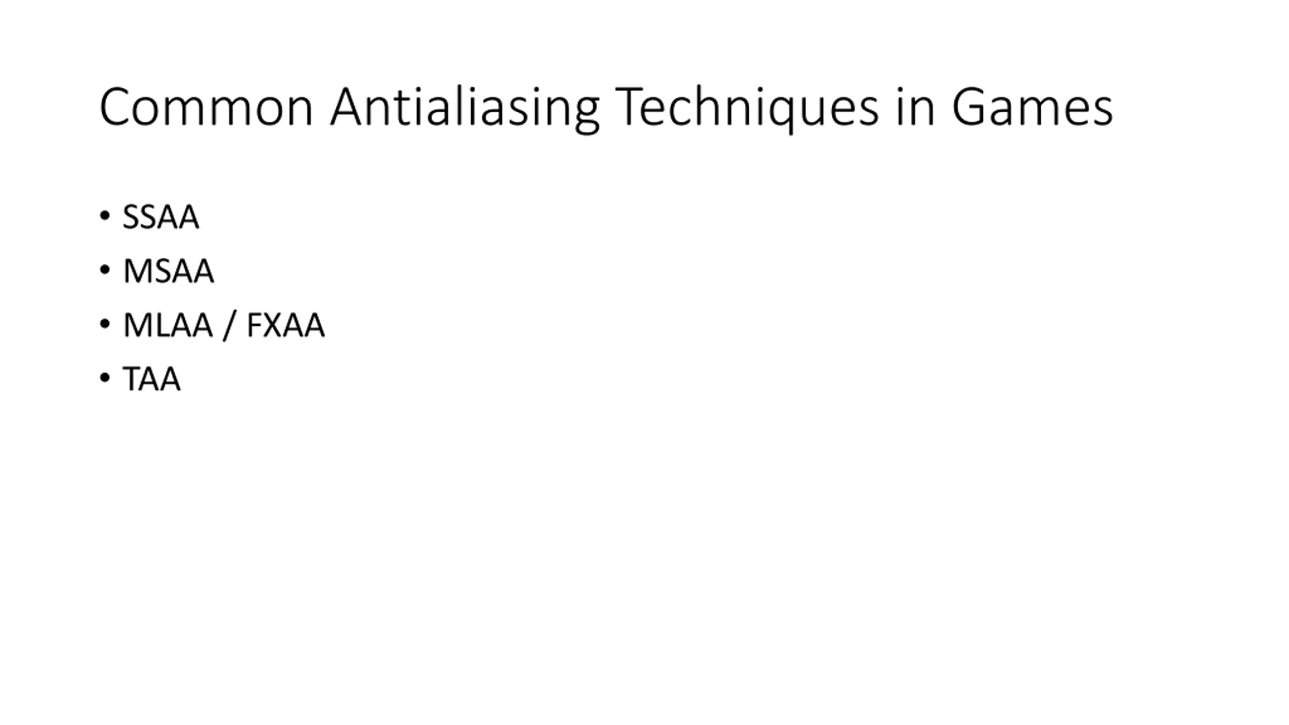Common Antialiasing Techniques in Games SSAA MSAA MLAA / FXAA TAA
