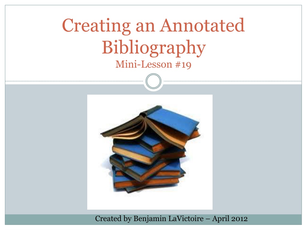 Creating an Annotated Bibliography Mini-Lesson #19 Created by Benjamin LaVictoire April 2012