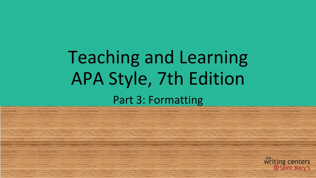 Teaching and Learning APA Style, 7th Edition Part 3: Formatting