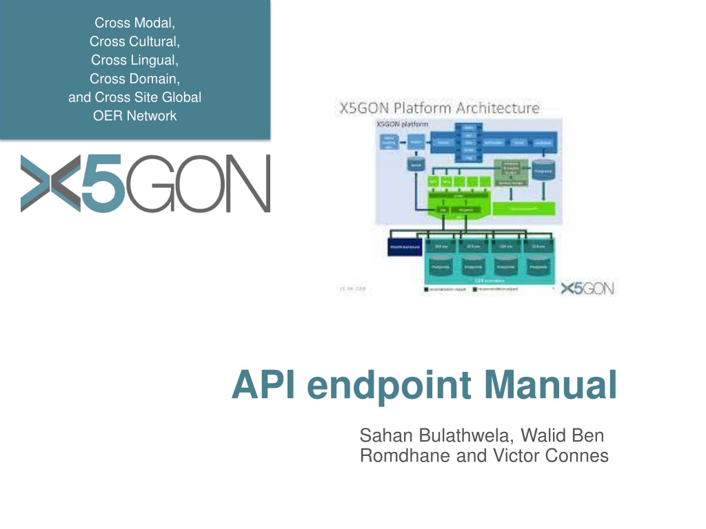Cross Modal, Cross Cultural, Cross Lingual, Cross Domain, and Cross Site Global OER Network API endpoint Manual Sahan Bulathwela, Walid Ben Romdhane and Victor Connes