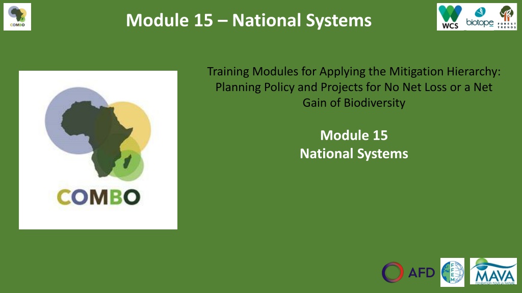 Module 15 National Systems Training Modules for Applying the Mitigation Hierarchy: Planning Policy and Projects for No Net Loss or a Net Gain of Biodiversity Module 15 National Systems 1
