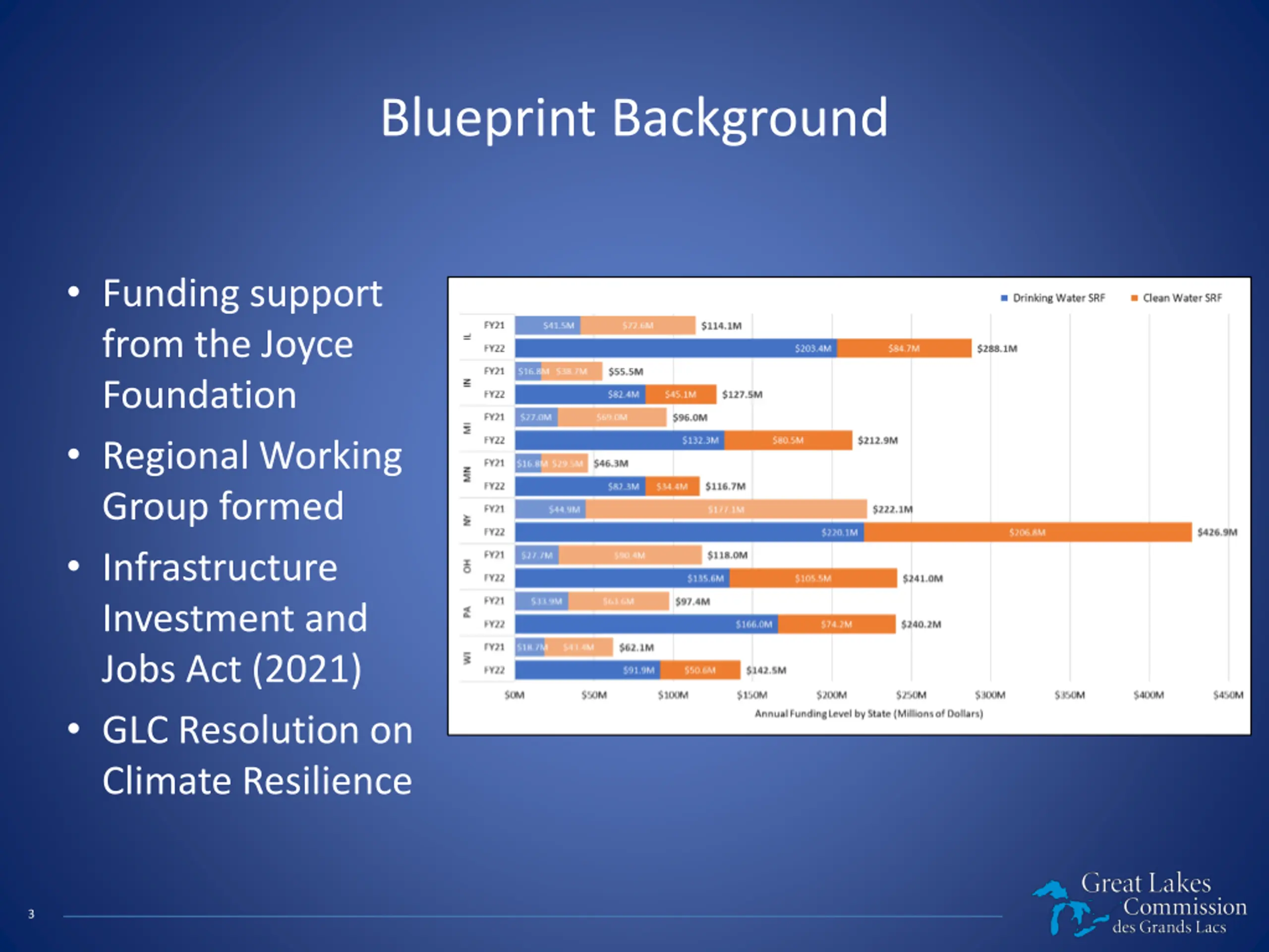 Blueprint Background Funding support from the Joyce Foundation Regional Working Group formed Infrastructure Investment and Jobs Act (2021) GLC Resolution on Climate Resilience 3