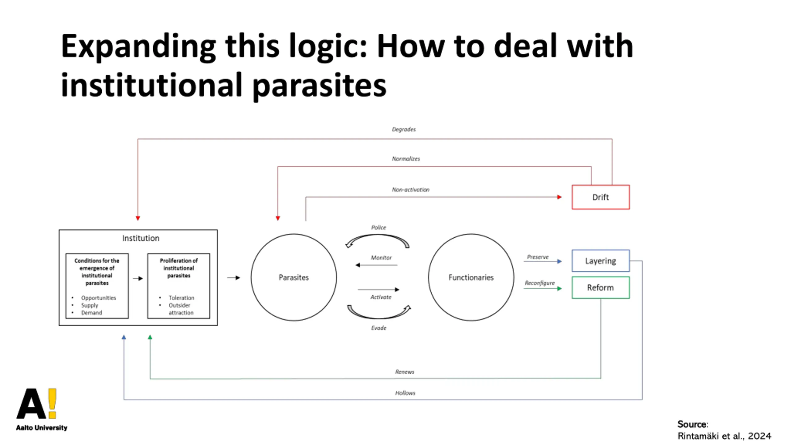 Expanding this logic: How to deal with institutional parasites Source Source: Rintam ki et al., 2024