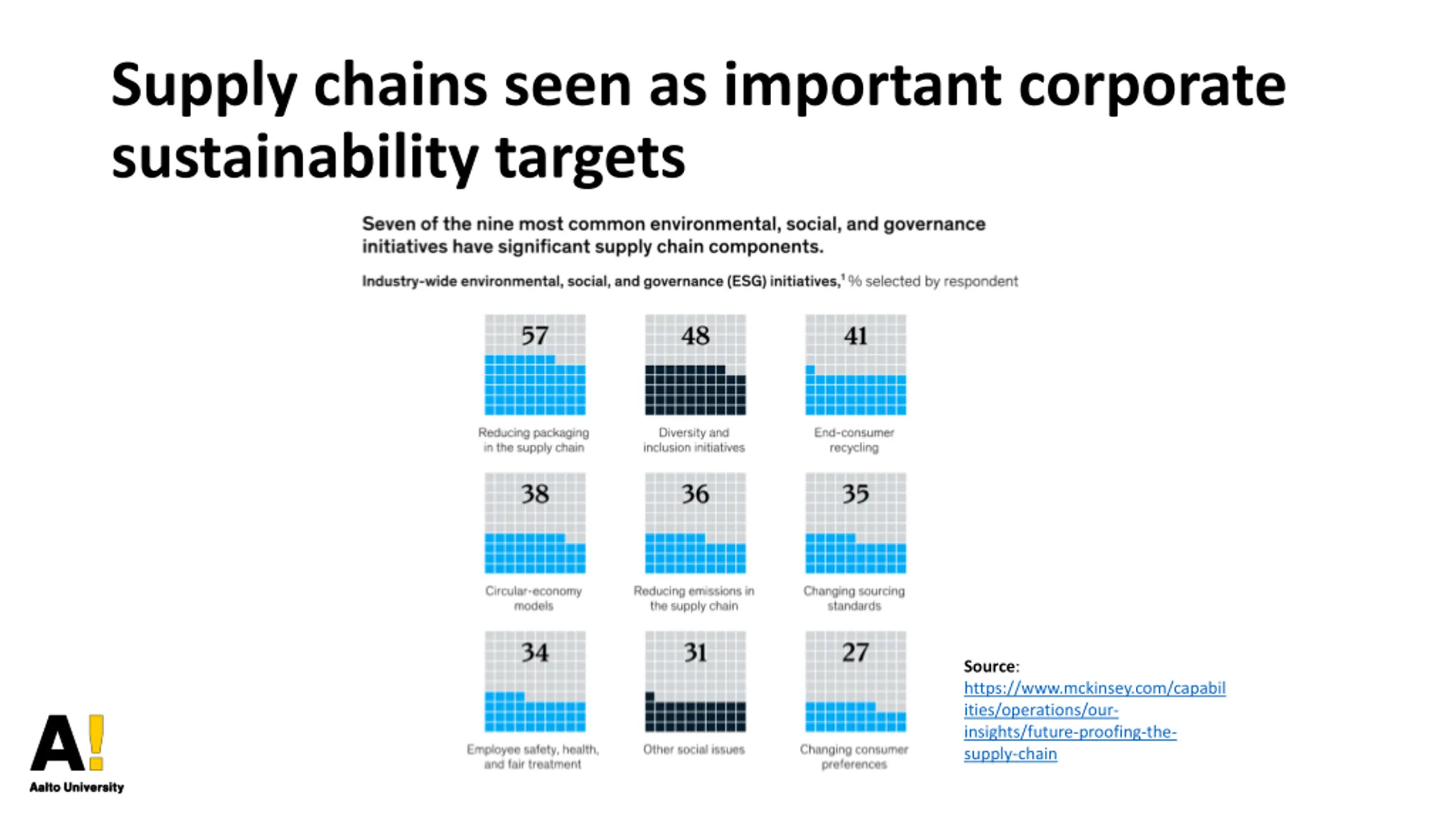 Supply chains seen as important corporate sustainability targets Source: https://www.mckinsey.com/capabil ities/operations/our- insights/future-proofing-the- supply-chain
