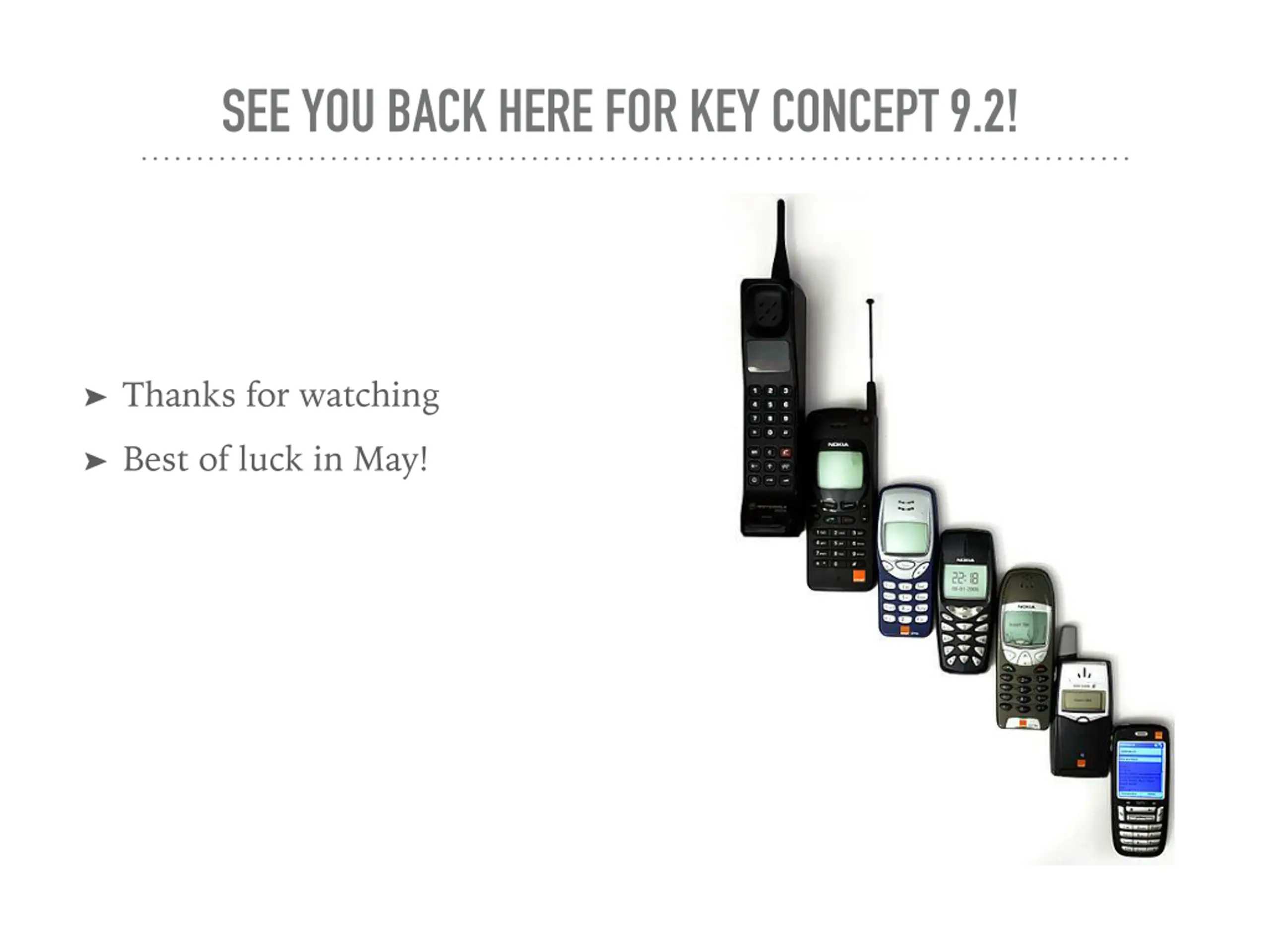 SEE YOU BACK HERE FOR KEY CONCEPT 9.2! Thanks for watching Best of luck in May!