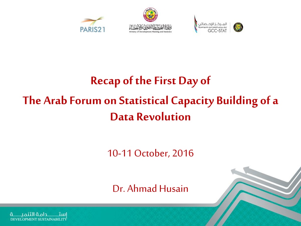 Recap of the First Day of The Arab Forum on Statistical Capacity Building of a Data Revolution 10-11 October, 2016 Dr. Ahmad Husain