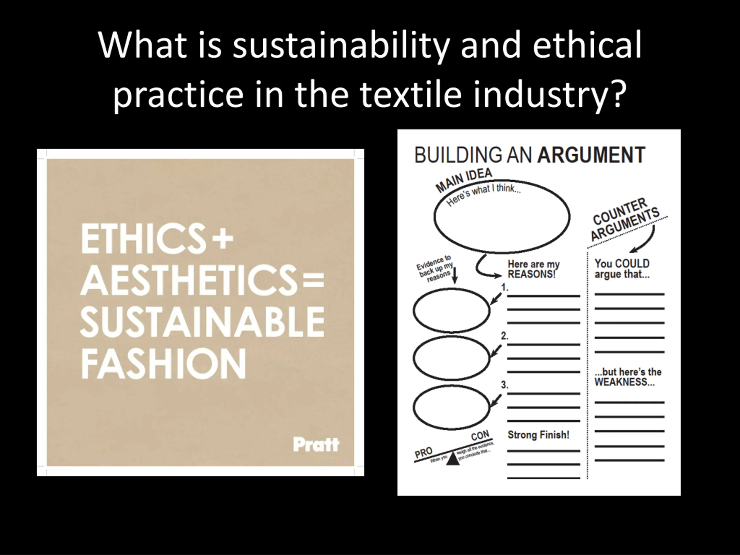 Sustainability Sustainability and Ethical Practices in the Textile industry: What is it and how will it affect my business choices. Assignment: Define sustainability and ethical practices as they relate to the textile industry. Research 3 different companies that are working toward improving their sustainability and ethical practices in the production of clothing and textiles. Write an argumentative statement addressing the following question: What is sustainability and ethical practice in the textile industry? We are FOR or AGAINST 1.List 3 reasons 2.What is the evidence for each reason to back up your claim? 3.List one counter arguments and its weakness 4.Have a strong finish 5.Works Cited (list websites you used MLA) 1.What is sustainability and ethical practice in the textile industry? Review each of the following websites and then write your own definition of sustainability. a.H&M- http://tablet.hm.com/us/life/culture/h-m-inside/2015/01/a-sustainable-future b.Qualcomm (this is not a textile industry, but the concept of sustainability is well explained.) - https://www.qualcomm.com/company/sustainability c.The Gap - http://www.gapinc.com/content/gapinc/html/social_responsibility.html 2.What does it mean to use fair trade practices? How can a consumer tell if the product he/she is purchasing has been produced using fair trade practices? Go to the USA Fair Trade Web site to find out more about it. http://www.fairtradeusa.org/ 3.How would you as a new entrepreneur use your knowledge of sustainability and ethical practices in the choices you make for your business? (3 things you could do)