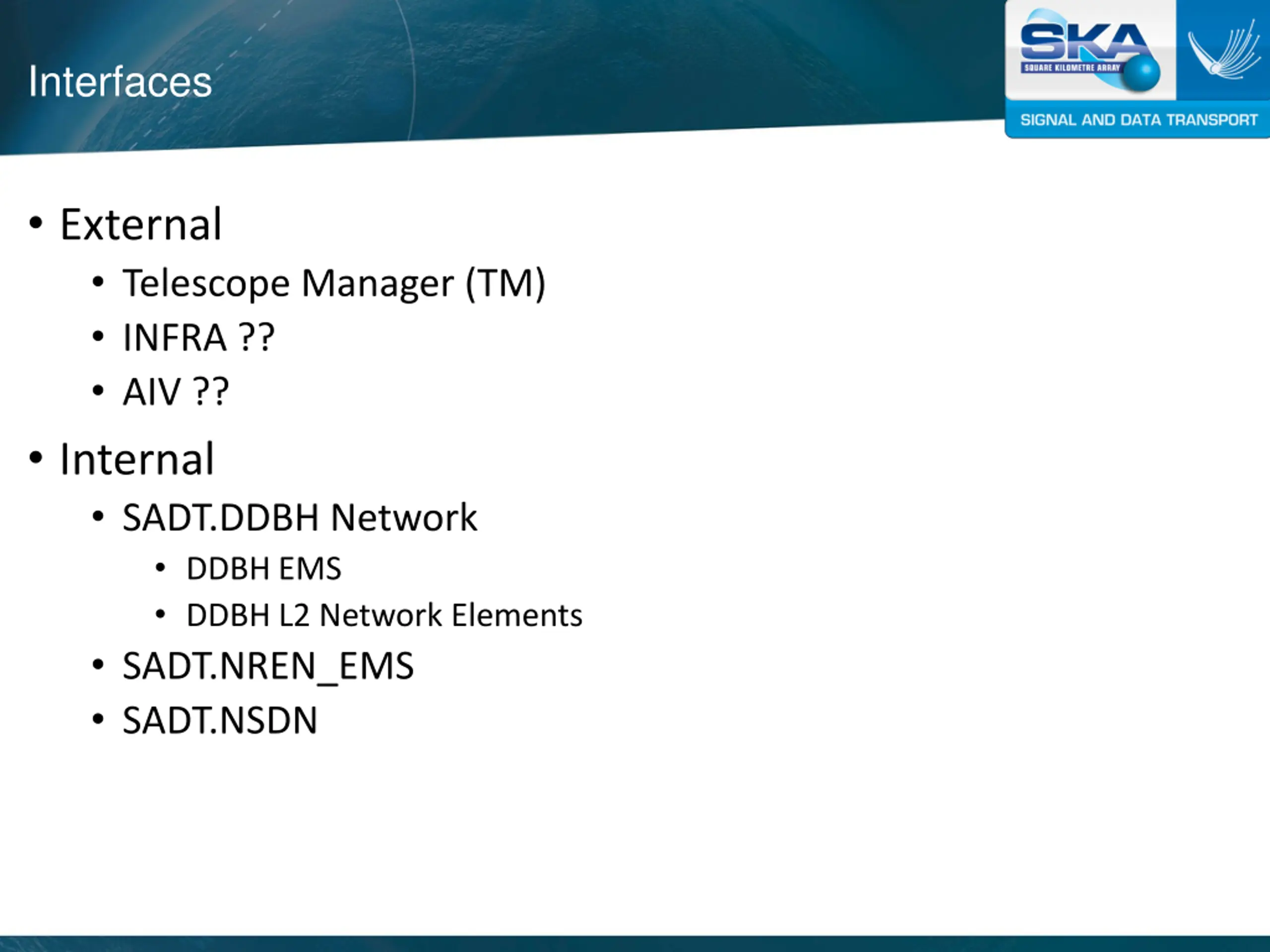 Interfaces External Telescope Manager (TM) INFRA ?? AIV ?? Internal SADT.DDBH Network DDBH EMS DDBH L2 Network Elements SADT.NREN_EMS SADT.NSDN