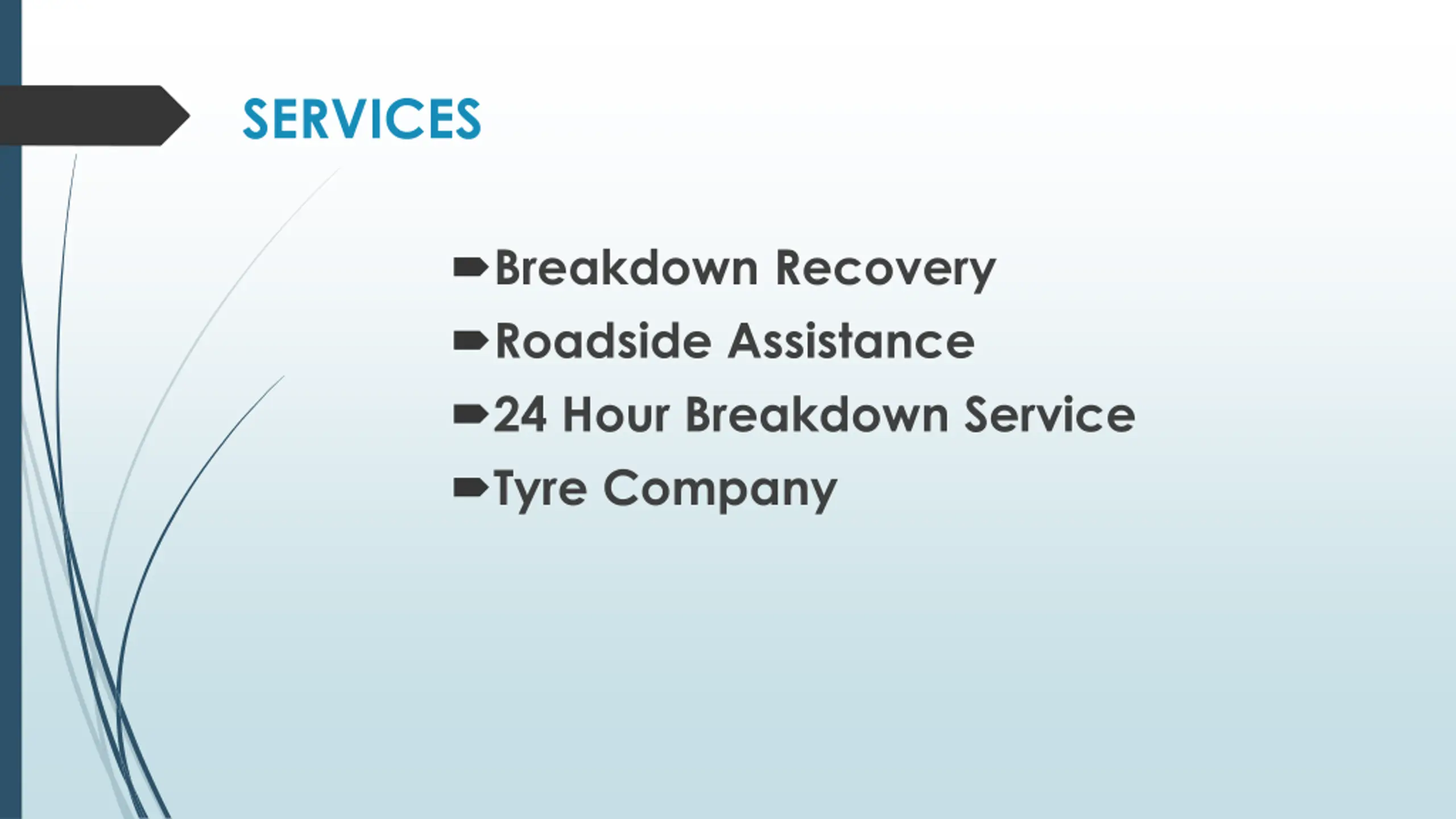 SERVICES Breakdown Recovery Roadside Assistance 24 Hour Breakdown Service Tyre Company
