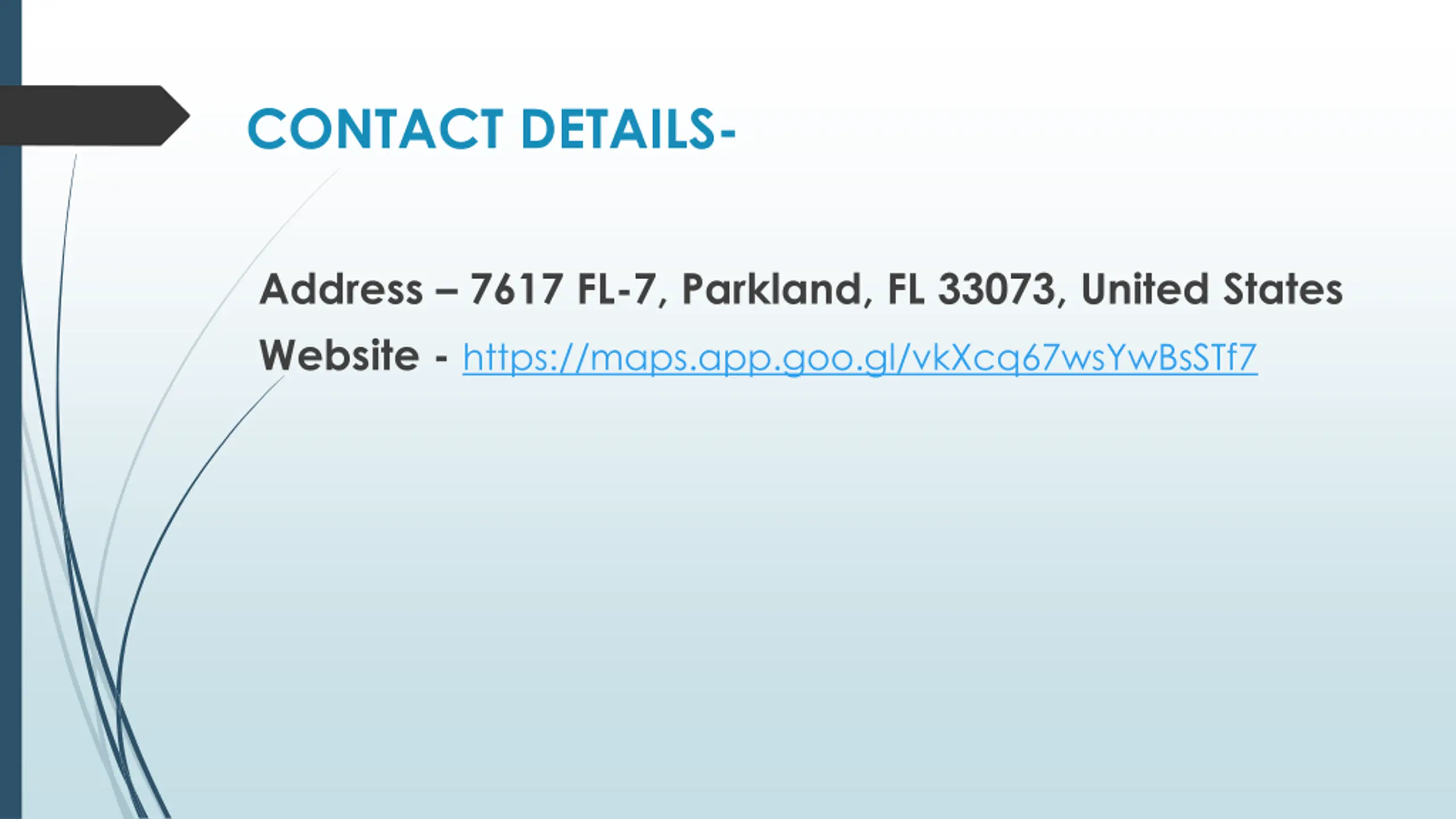 CONTACT DETAILS- Address 7617 FL-7, Parkland, FL 33073, United States Website - https://maps.app.goo.gl/vkXcq67wsYwBsSTf7