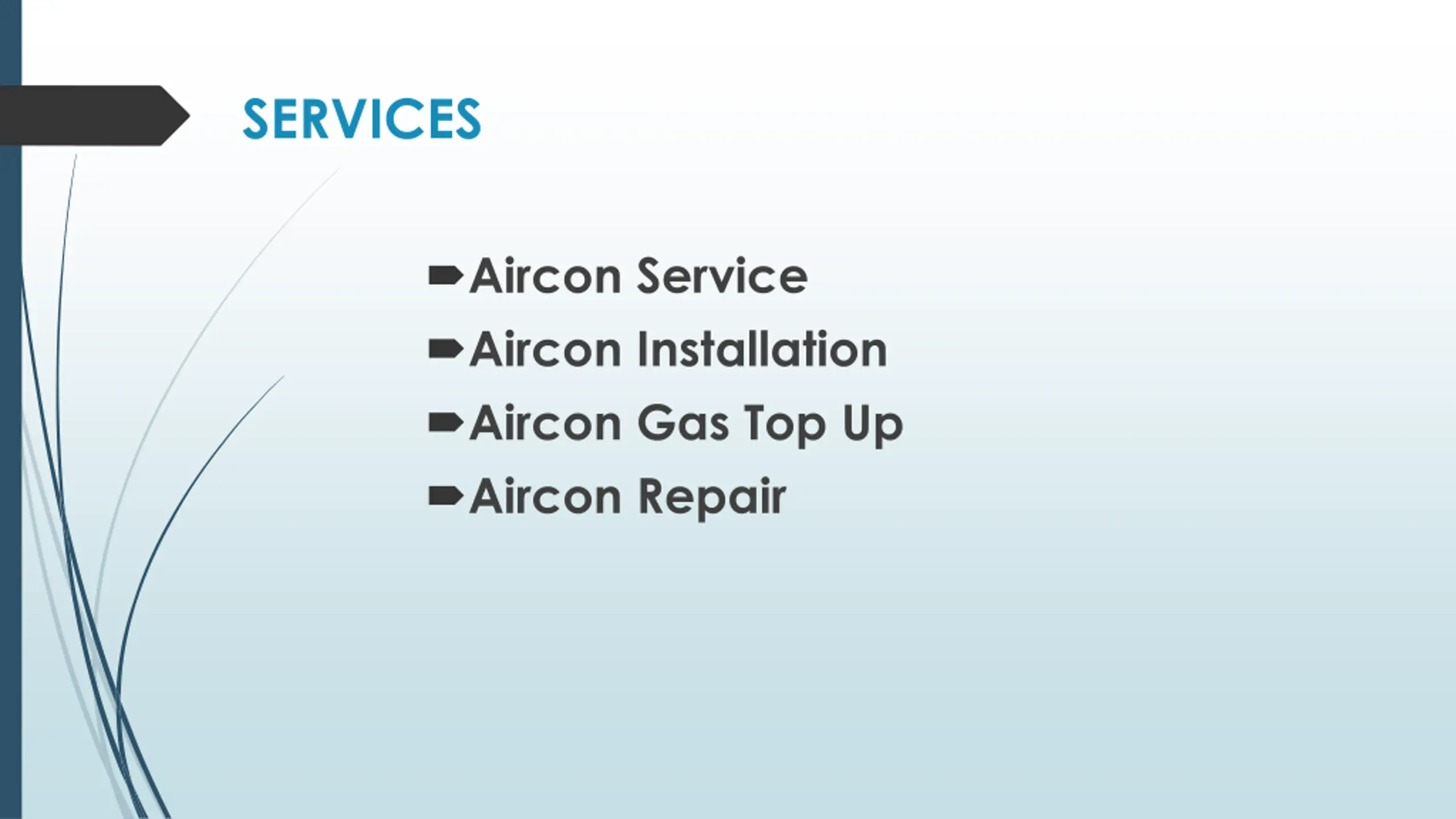 SERVICES Aircon Service Aircon Installation Aircon Gas Top Up Aircon Repair