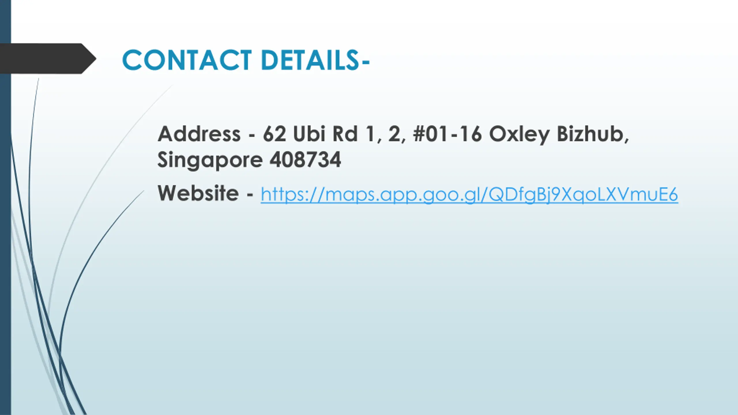 CONTACT DETAILS- Address - 62 Ubi Rd 1, 2, #01-16 Oxley Bizhub, Singapore 408734 Website - https://maps.app.goo.gl/QDfgBj9XqoLXVmuE6