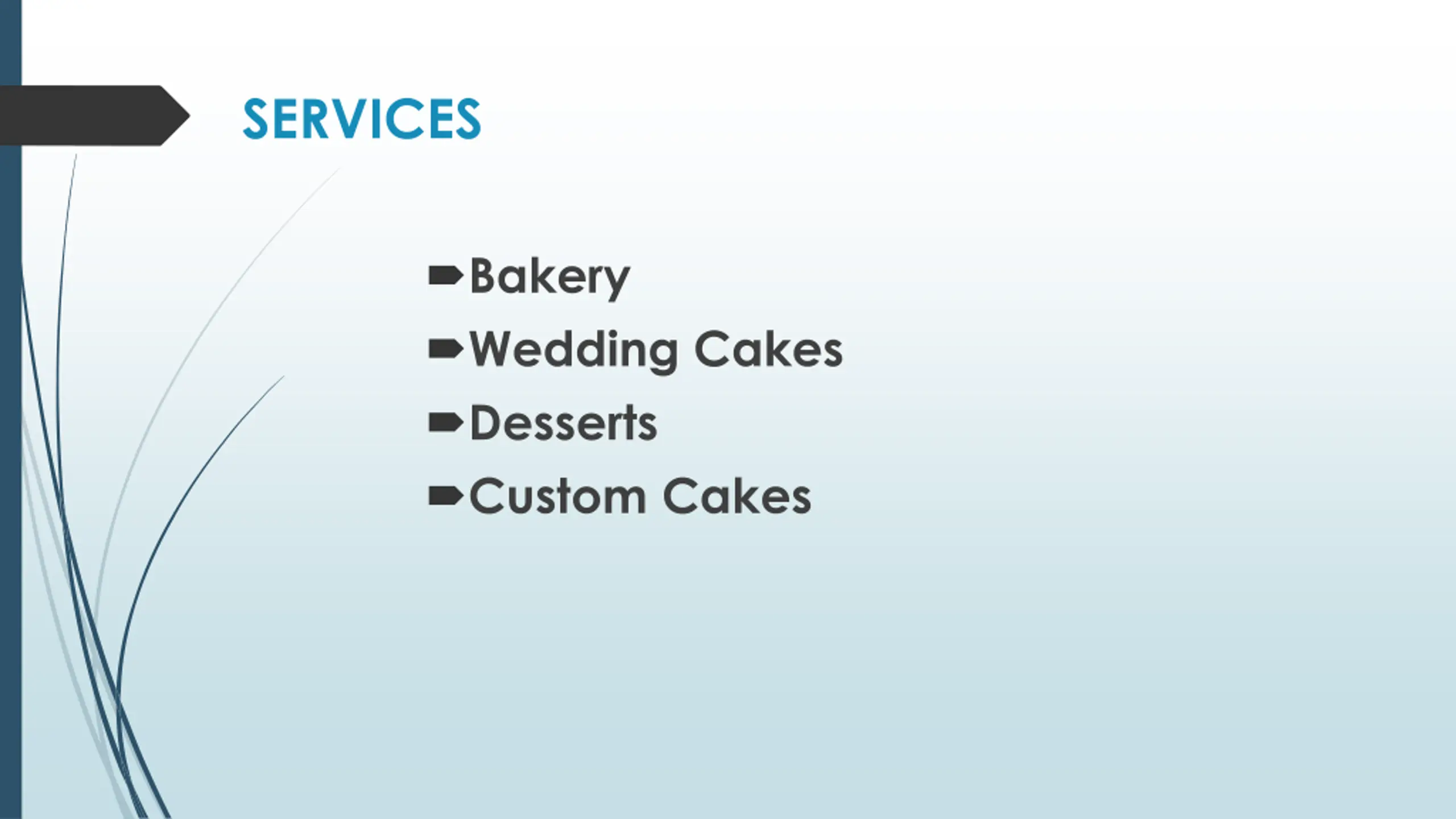 SERVICES Bakery Wedding Cakes Desserts Custom Cakes