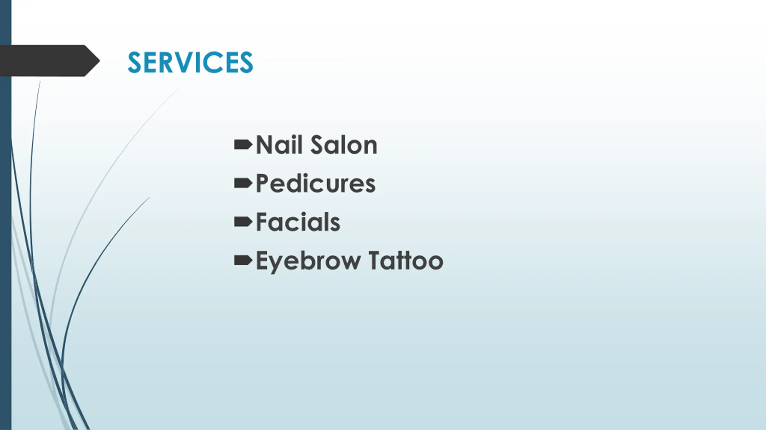 SERVICES Nail Salon Pedicures Facials Eyebrow Tattoo