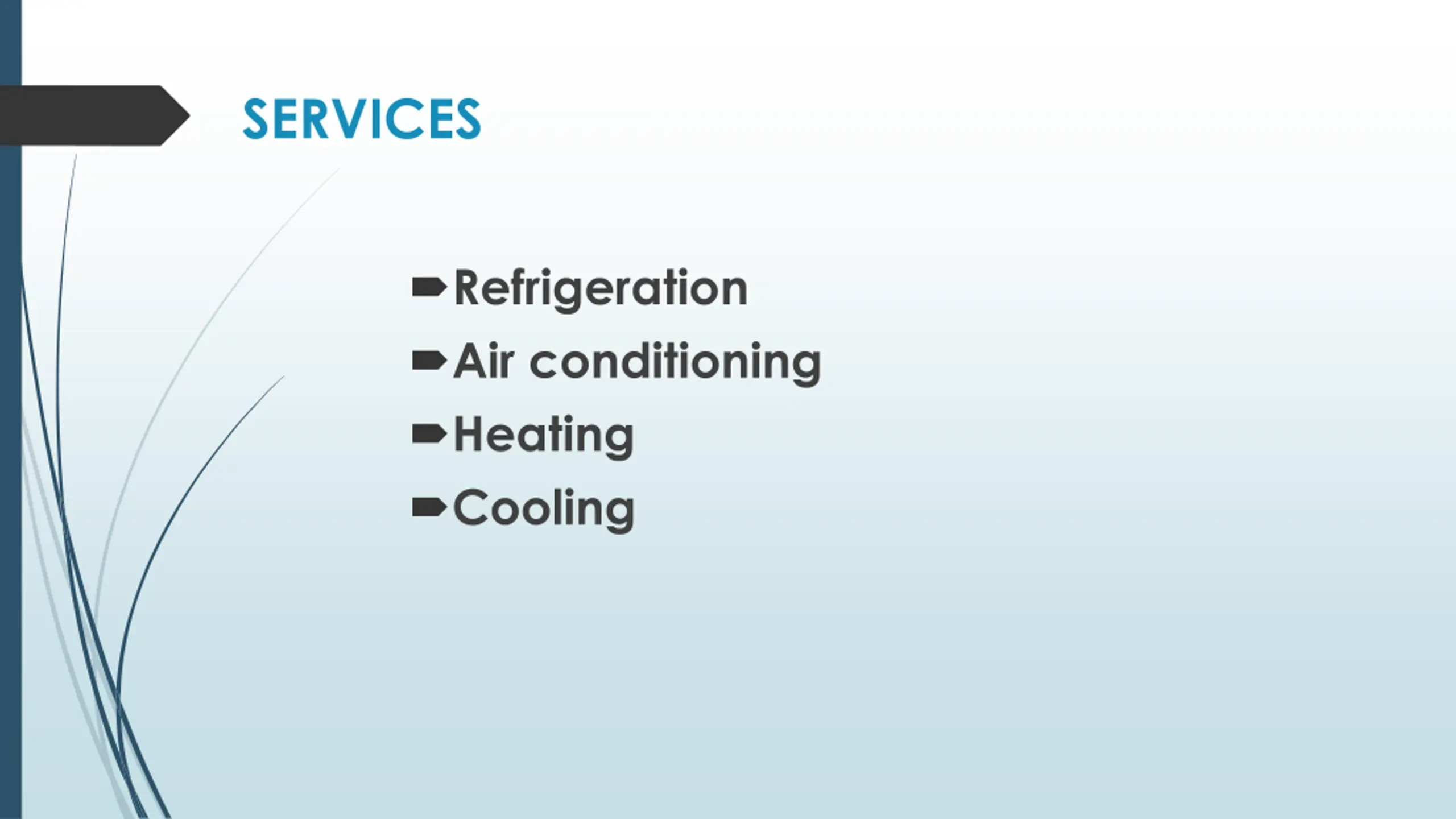 SERVICES Refrigeration Air conditioning Heating Cooling