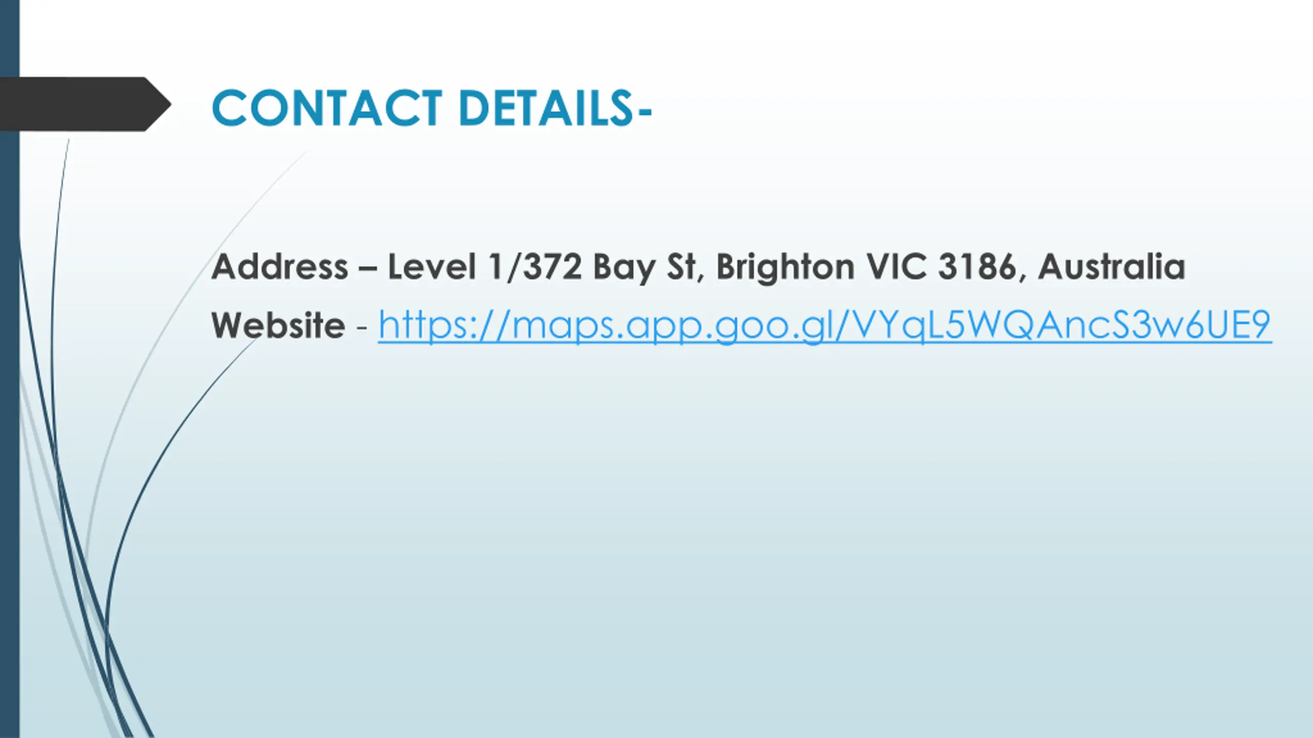 CONTACT DETAILS- Address Level 1/372 Bay St, Brighton VIC 3186, Australia Website - https://maps.app.goo.gl/VYqL5WQAncS3w6UE9
