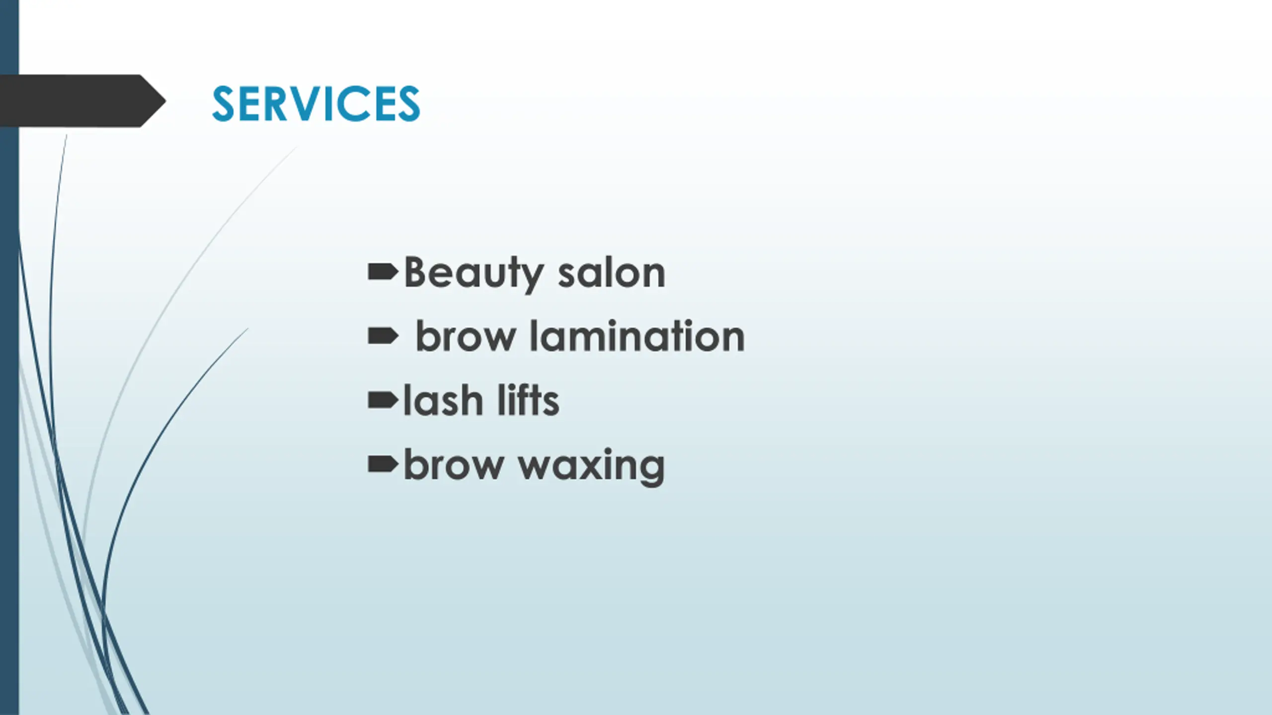 SERVICES Beauty salon brow lamination lash lifts brow waxing